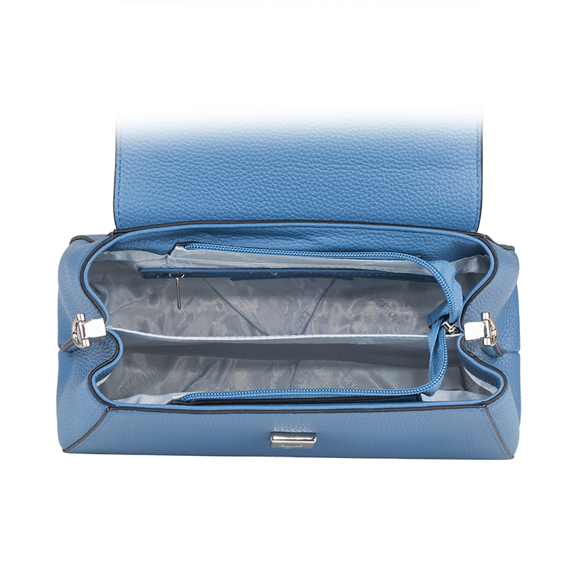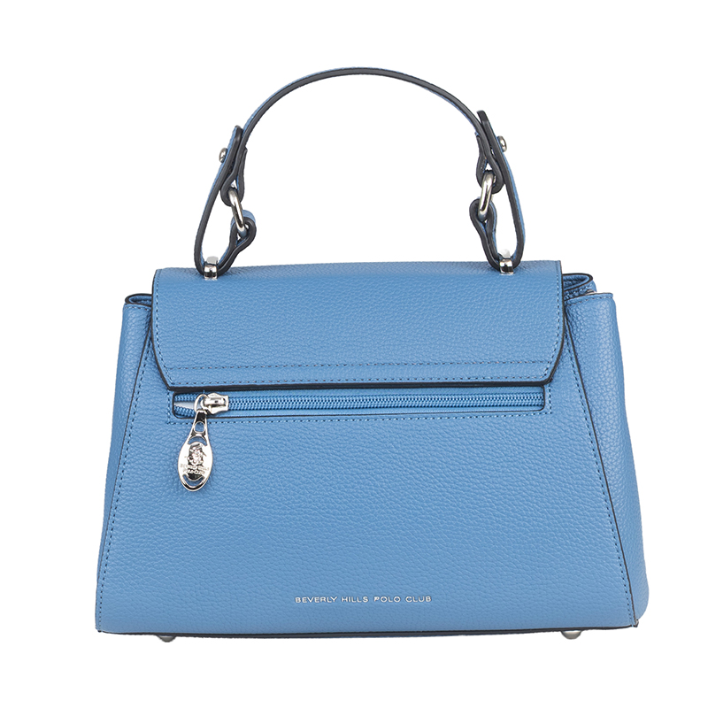 Тази дамска чанта от висококачествена еко кожа в небесно син нюанс впечатлява с компактна форма и изчистен силует. Размерите 26 x 16,5 x 12 см я правят идеален избор за ежедневно носене или за вечерно излизане – достатъчно просторна за портмоне, телефон, ключове и козметика. Основното отделение се затваря с елегантен преден капак, който се фиксира с магнит и придава допълнителен завършек на дизайна. Вътре има практични джобчета за по-добра подредба на най-важните аксесоари. Късата стабилна дръжка позволява чантата да се носи в ръка, а включената дълга регулируема презрамка дава възможност за носене през рамо или „crossbody“, според стила и повода. Фините метални елементи и деликатното лого Beverly Hills Polo Club на предната част подчертават изисканото излъчване и превръщат модела в чудесен избор за подарък.