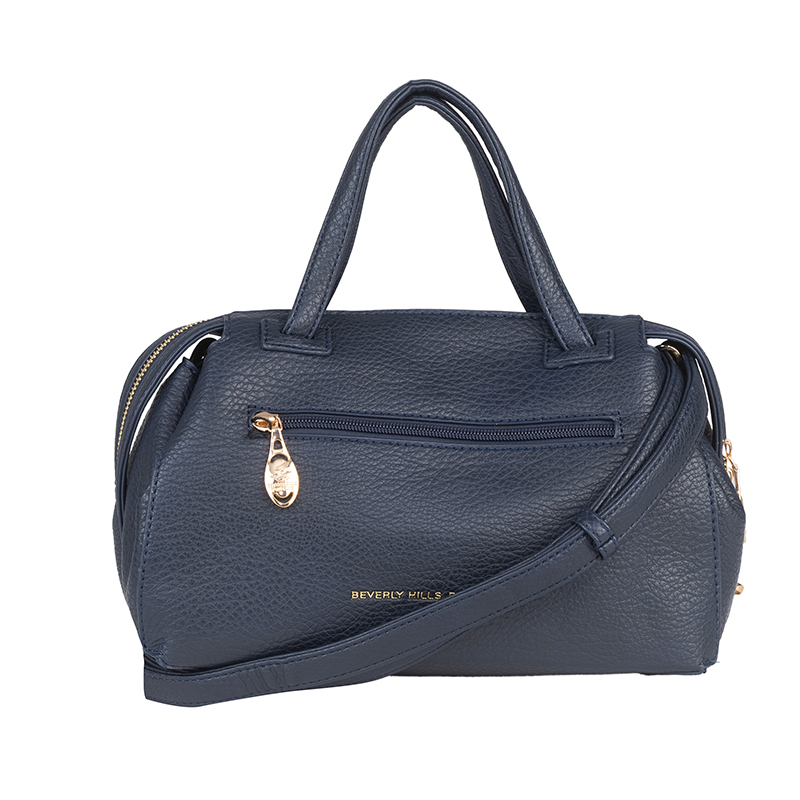 Тази дамска чанта от еко кожа в синьо е перфектният баланс между стил и удобство. Меката, леко структурирана форма и размерите 27 x 16 x 14 см я правят подходяща за ежедневна употреба – побира портмоне, телефон, козметика, очила и други необходими принадлежности. Основното отделение се затваря с цип по цялата дължина, осигурявайки сигурност на съдържанието, а вътрешните джобчета помагат за добра организация на аксесоарите. Двете къси дръжки придават елегантен вид и позволяват удобно носене в ръка, докато свалящата се и регулируема дълга презрамка дава възможност чантата да се носи и през рамо или „crossbody“. Фината плочка с логото Beverly Hills Polo Club на предната част добавя премиум акцент и подчертава изисканата линия на модела, който лесно се комбинира с различни стилове облекло.