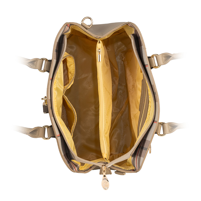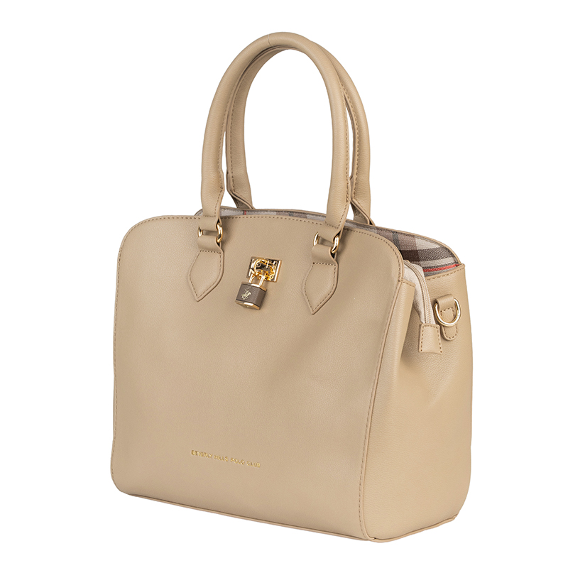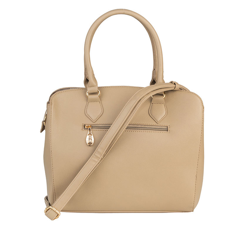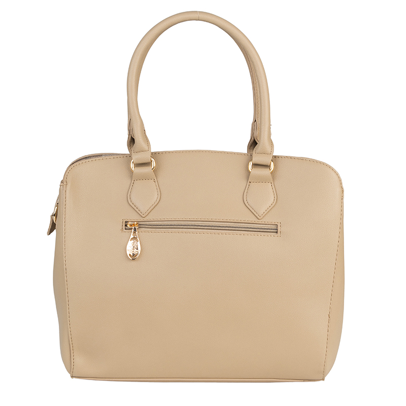 Тази елегантна дамска чанта в бежов цвят е създадена да допълва всяка визия – от ежедневна до по-изискана. Изработена от висококачествена еко кожа, моделът впечатлява с гладка текстура, устойчивост и луксозен външен вид. Златистите детайли придават изтънчен акцент, а удобните дръжки и допълнителната дълга презрамка позволяват носене по различни начини. Просторното вътрешно отделение и практичният дизайн правят чантата идеален избор за съхранение на лични принадлежности през целия ден.