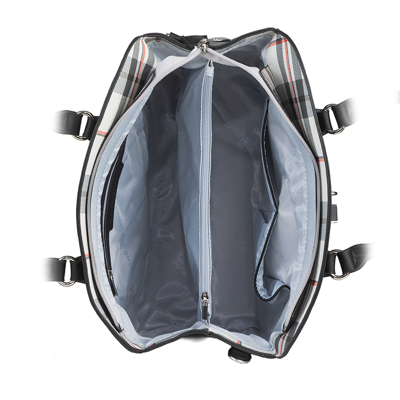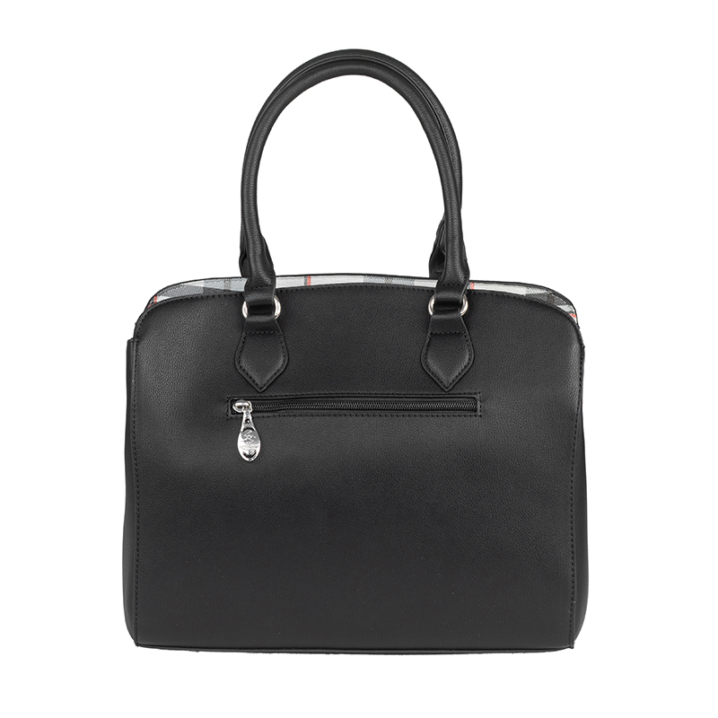 Тази елегантна дамска чанта в черен цвят е създадена да допълва всяка визия – от ежедневна до по-изискана. Изработена от висококачествена еко кожа, моделът впечатлява с гладка текстура, устойчивост и луксозен външен вид. Златистите детайли придават изтънчен акцент, а удобните дръжки и допълнителната дълга презрамка позволяват носене по различни начини. Просторното вътрешно отделение и практичният дизайн правят чантата идеален избор за съхранение на лични принадлежности през целия ден.