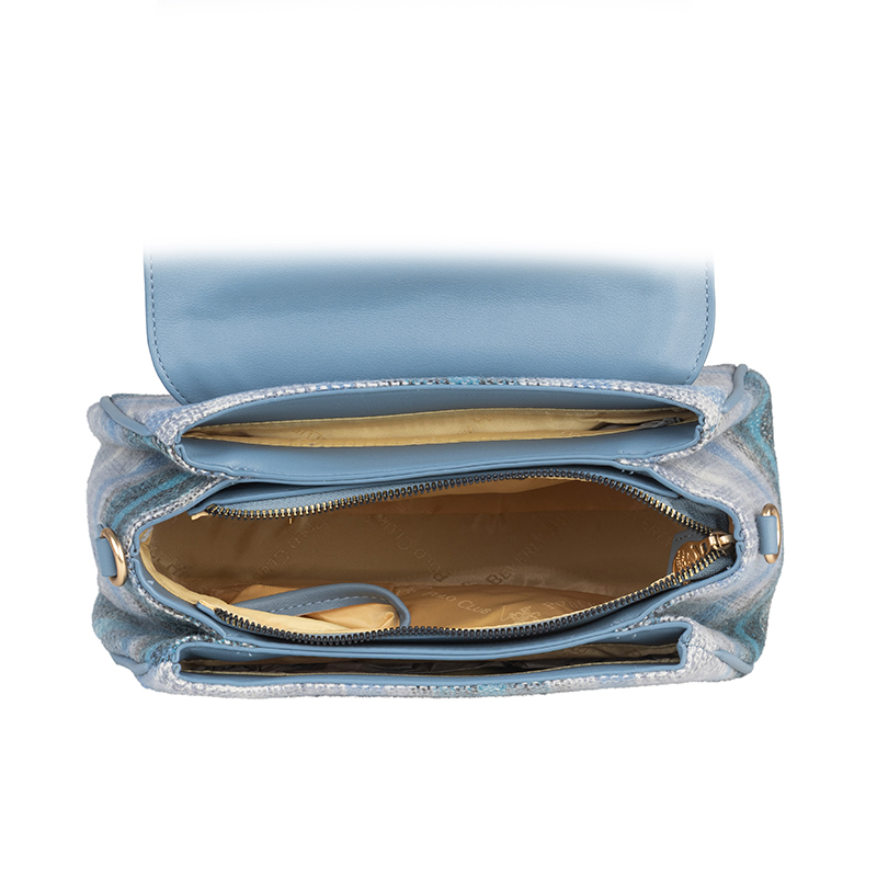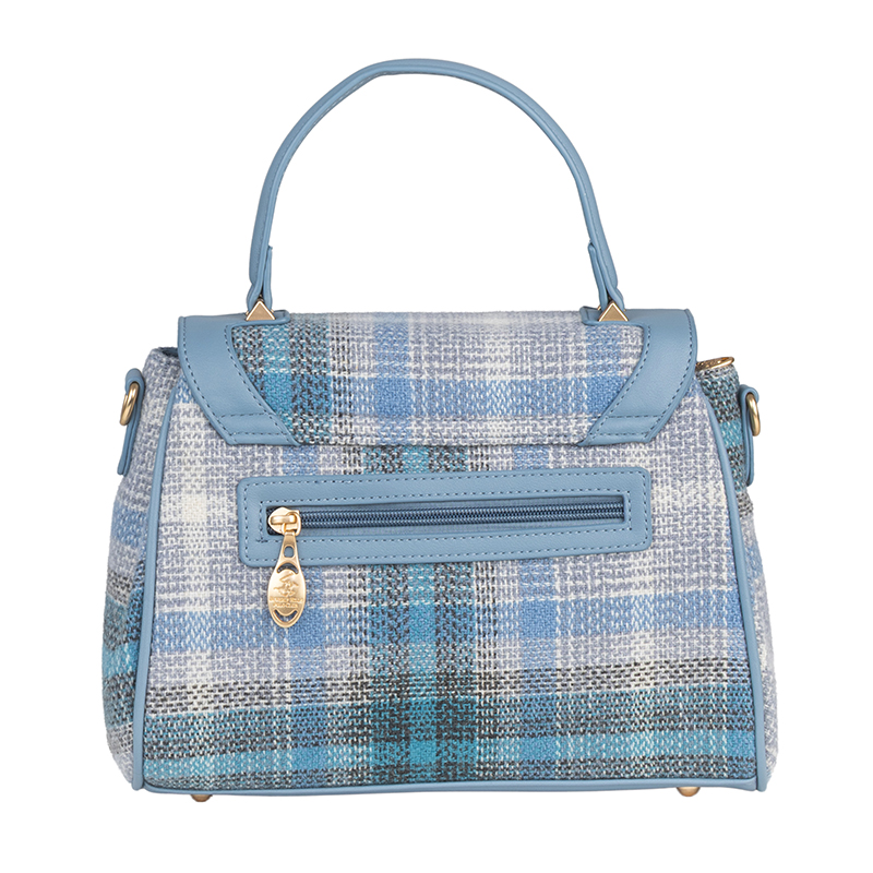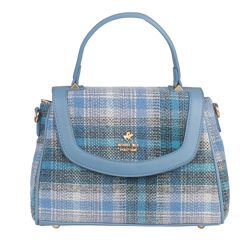 Тази дамска чанта в син цвят, впечатлява с изискано каре контрастиращи гладки елементи от еко кожа. Компактният, но удобен силует с размери 27,5 x 18 x 12,5 см предлага достатъчно пространство за принадлежности – портмоне, телефон, ключове и малък несесер. Основното отделение се затваря с капак, а вътрешните джобчета помагат всичко да остане подредено. Удобната къса дръжка позволява носене в ръка, а дългата регулируема и сваляща се презрамка дава възможност чантата да се носи и през рамо или crossbody. Фини златисти елементи и емблематичното лого Beverly Hills Polo Club на капака добавят луксозен завършек и правят модела чудесен избор както за ежедневието, така и за по-елегантни излизания.
