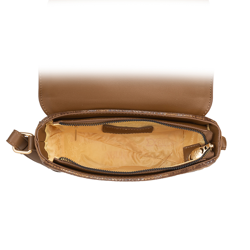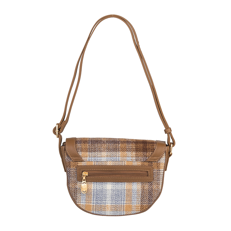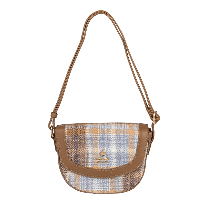 Тази дамска чанта тип crossbody впечатлява с ефектна комбинация от еко кожа и текстил в каре. Компактните размери 23 x 17 x 7 см я правят идеален избор за разходки, пътуване или ежедневни излизания – побира портмоне, телефон, ключове и малки аксесоари. Дългата регулируема презрамка позволява да носите чантата удобно през рамо или „crossbody“, оставяйки ръцете свободни. Фините златисти детайли и логото Beverly Hills Polo Club на капака придават елегантен акцент и подчертават премиум усещането на модела.