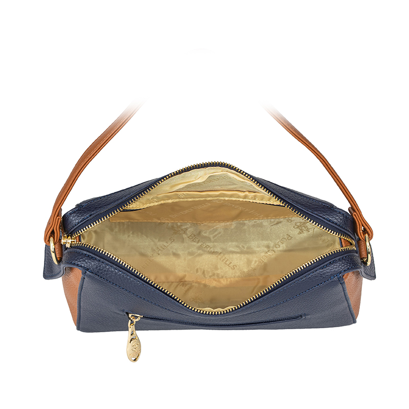 Тази дамска чанта е изработена от висококачествена еко кожа и впечатлява с изискан двуцветен дизайн. Компактните, но практични размери 25,5 x 17 x 9,5 см осигуряват достатъчно пространство за портмоне, телефон и ключове. Моделът разполага с удобна къса дръжка за носене в ръка и сваляща се, регулируема дълга презрамка за комфортно носене през рамо или crossbody. Финото златисто лого Beverly Hills Polo Club отпред подчертава премиум излъчването и превръща чантата в елегантен акцент към всяка визия.