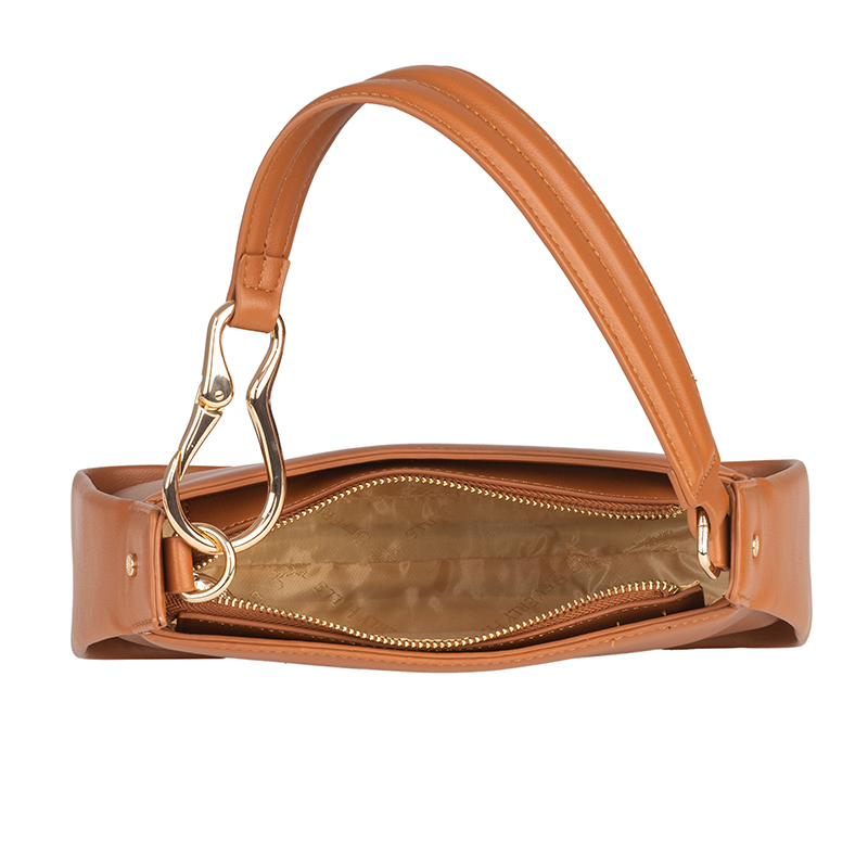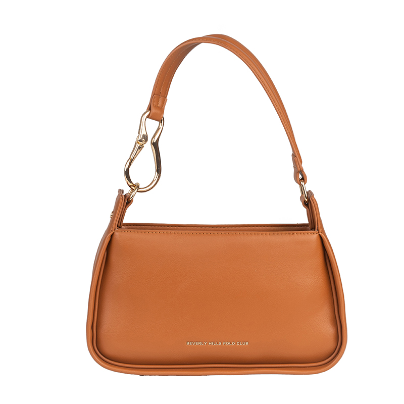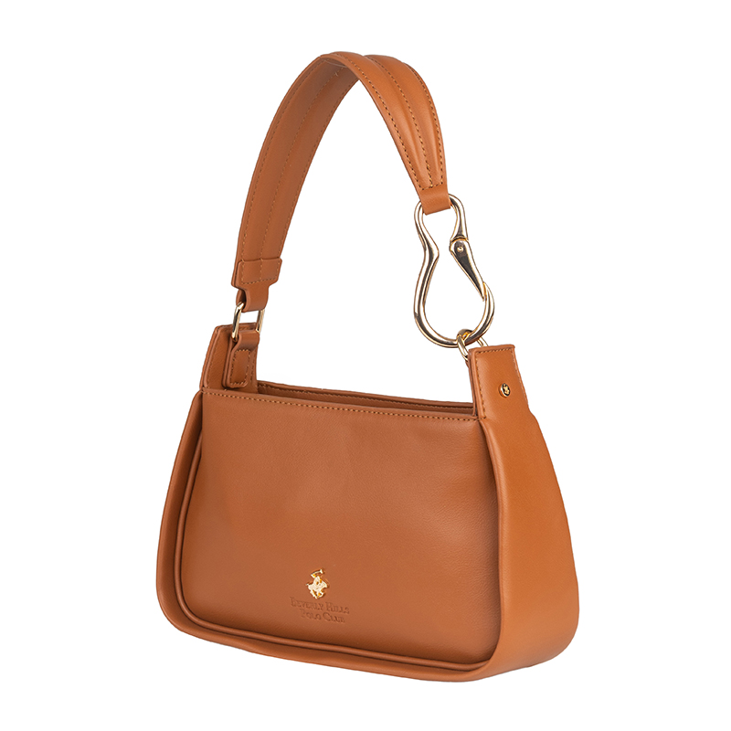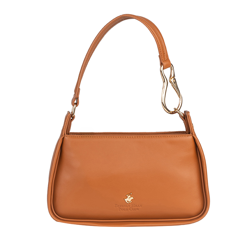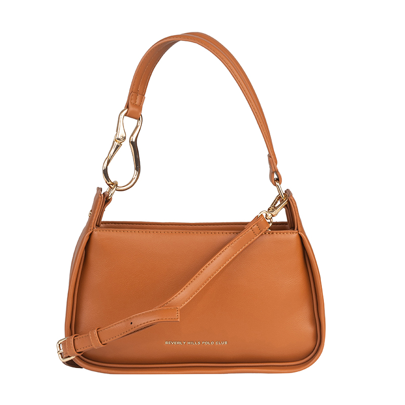 Тази дамска чанта предлага изчистена, класическа линия и универсална елегантност. Изработена е от висококачествена еко кожа в кафяв тон, който лесно се комбинира с всякакви стилове и сезони. Компактните размери 27,5 x 16 x 7 см я правят удобна за носене, без да се губи пространство за необходимите вещи. Чантата може да се носи както в ръка, така и през рамо благодарение на двете презрамки – една къса и една дълга, регулираща се. Елегантните златисти метални детайли и логото на Beverly Hills Polo Club придават завършен луксозен акцент.