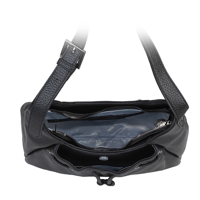Тази дамска чанта тип „торба“ е изработена от мека еко кожа и впечатлява с изчистен, но характерен дизайн. Горната част е оформена с метални капси и стягащи връзки, които придават модерен вид и позволяват лесно регулиране на отвора. Размерите 28 x 31 x 10 см осигуряват достатъчно пространство за портмоне, телефон, документи, козметична чантичка и други необходими принадлежности. Финото златисто лого Beverly Hills Polo Club в долната част подчертава премиум излъчването и прави модела подходящ както за ежедневни, така и за по-елегантни визии.