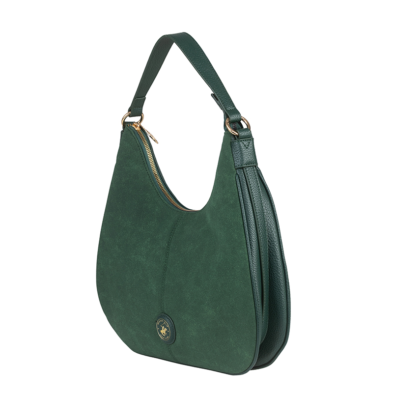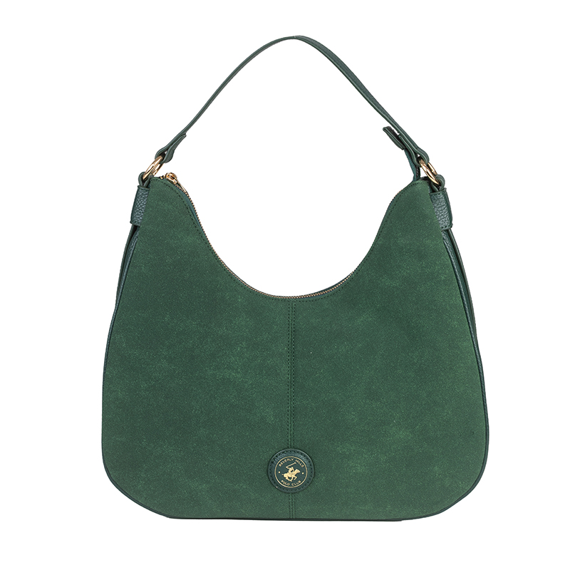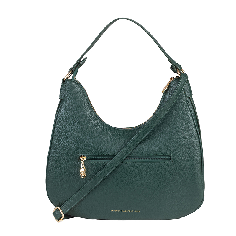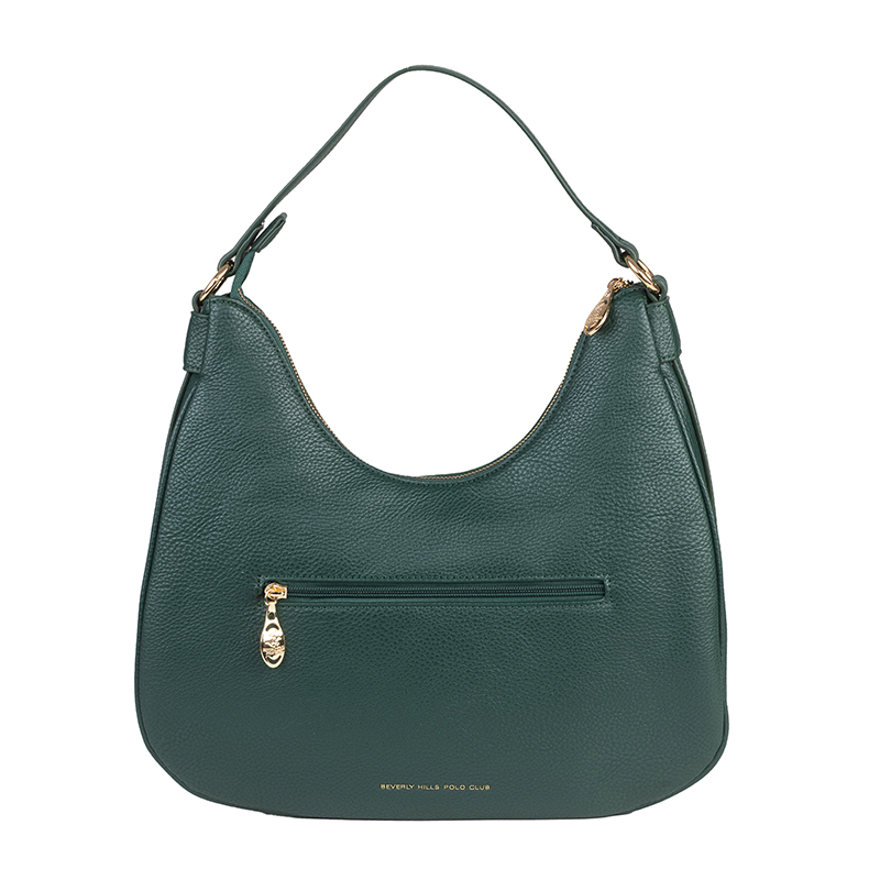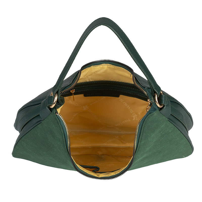 Тази дамска чанта впечатлява с елегантна, мека форма и естествено усещане, което придава завършеност на всяка стилна визия. Зеленият цвят придава свежест и модерен вид на облеклото – идеален както за ежедневието, така и за по-официални случаи. Изработена е от висококачествена еко кожа, която предлага дълготрайност и комфорт при носене. Размерите 35 x 31 x 7,5 см осигуряват достатъчно пространство за лични вещи като портфейл, козметика, телефон и документи. Удобната дръжка и конструкцията тип „hobo bag“ правят модела подходящ за динамични градски дни. Логото Beverly Hills Polo Club добавя премиум акцент, а златистите детайли завършват стилната визия.