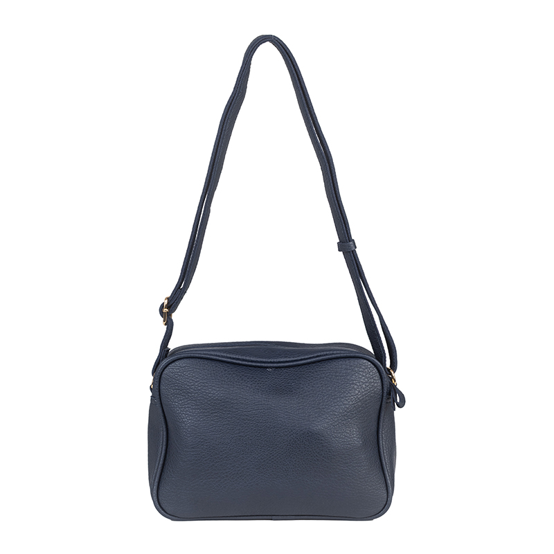 Дамската чанта в син цвят е идеален избор за ежедневието – компактна, но достатъчно просторна за вашите основни вещи. Разполага с преден джоб с цип за бърз достъп и малък калъф, прикрепен към дръжката, който може да се използва за ключове или дребни аксесоари. Основното отделение се затваря сигурно с цип, а регулируемата дълга дръжка осигурява комфорт при носене през рамо или крос-боди. Еко кожата е устойчива и лесна за поддръжка, а златистите елементи придават фина елегантност.