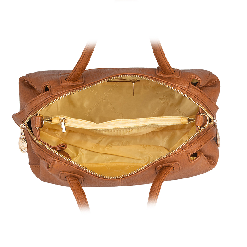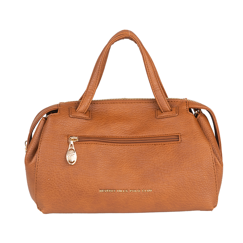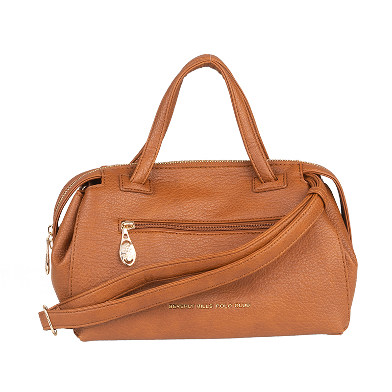 Тази дамска чанта от еко кожа в кафяво е перфектният баланс между стил и удобство. Меката, леко структурирана форма и размерите 27 x 16 x 14 см я правят подходяща за ежедневна употреба – побира портмоне, телефон, козметика, очила и други необходими принадлежности. Основното отделение се затваря с цип по цялата дължина, осигурявайки сигурност на съдържанието, а вътрешните джобчета помагат за добра организация на аксесоарите. Двете къси дръжки придават елегантен вид и позволяват удобно носене в ръка, докато свалящата се и регулируема дълга презрамка дава възможност чантата да се носи и през рамо или „crossbody“. Фината плочка с логото Beverly Hills Polo Club на предната част добавя премиум акцент и подчертава изисканата линия на модела, който лесно се комбинира с различни стилове облекло.