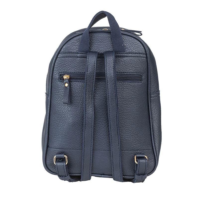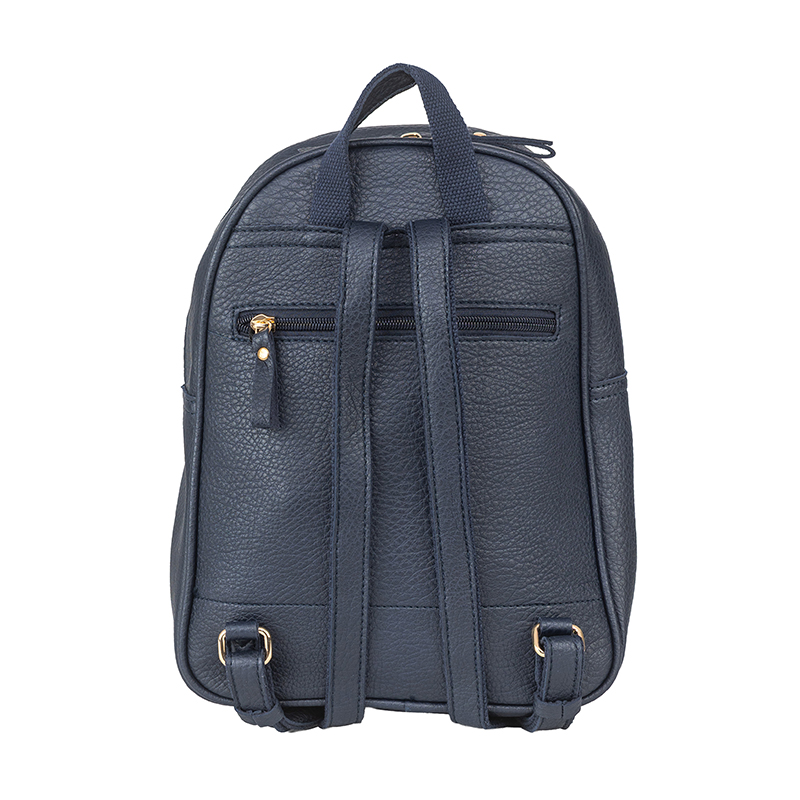 Тази дамска раница в син цвят предлага перфектен баланс между комфорт и стил. Основното отделение е с цип и осигурява достатъчно пространство за ежедневни вещи – документи, портфейл или дори малък таблет. На предната част има практичен джоб с цип, както и малък сваляем калъф, подходящ за ключове, слушалки или монети. Регулируемите презрамки позволяват удобно носене през целия ден, а еко кожата гарантира устойчивост и дълготрайност.