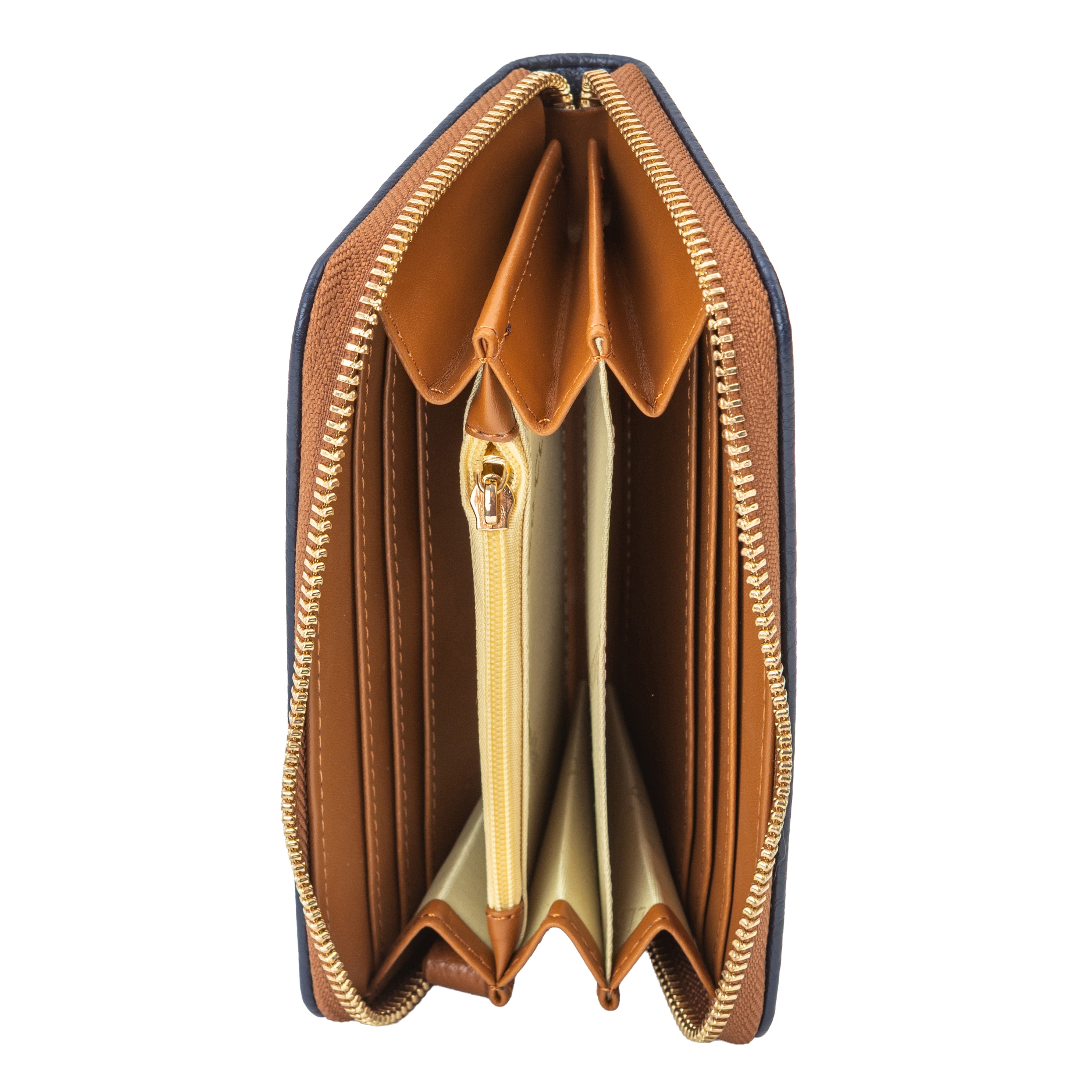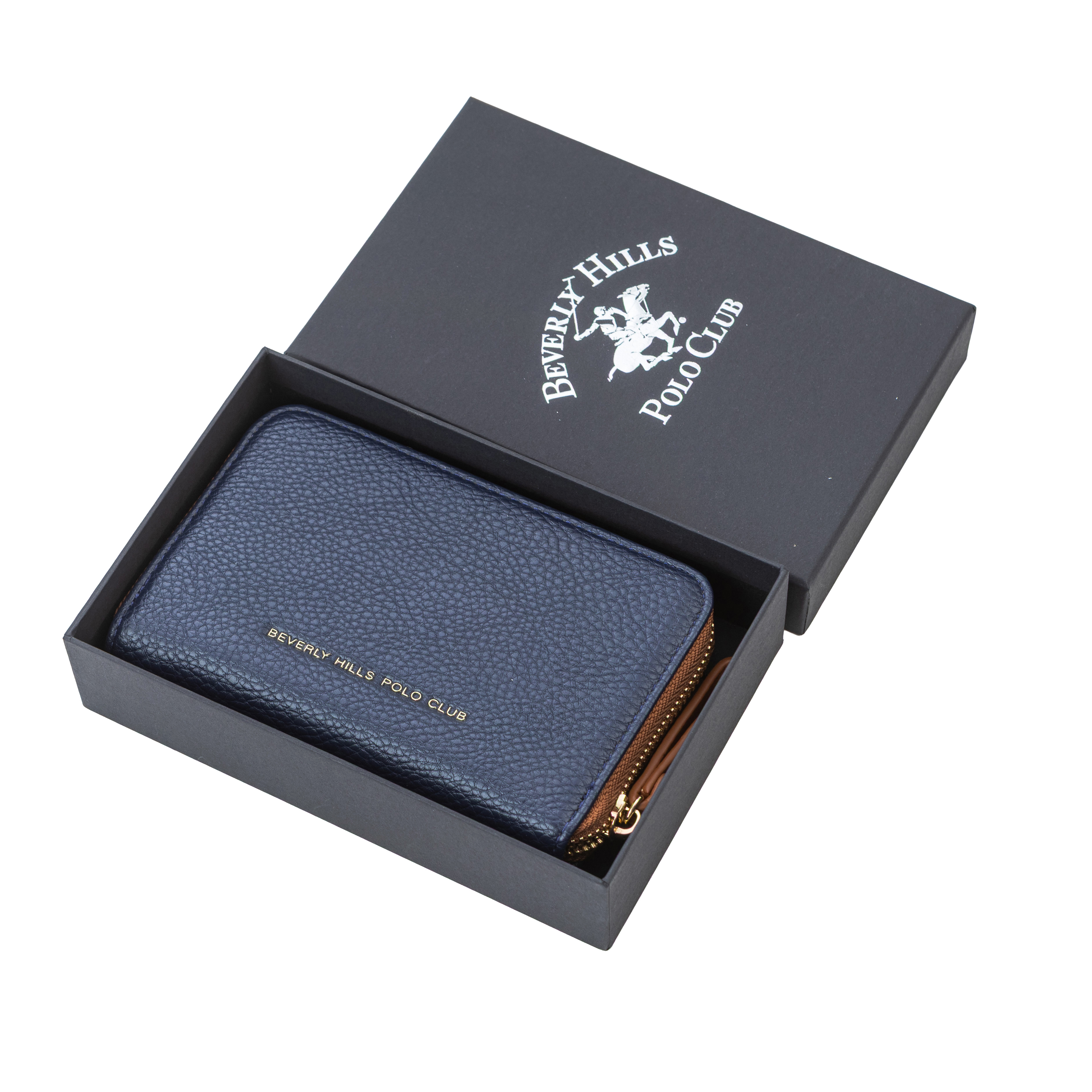 Това дамско портмоне от еко кожа е компактно, но предлага отлична организация на съдържанието. Правоъгълната форма и удобният обиколен цип осигуряват сигурно затваряне и лесен достъп до всички отделения. Вътрешността е с няколко разширяващи се секции, в които могат да се подредят банкноти, карти, документи и бележки. Дискретното златисто лого Beverly Hills Polo Club в предната част придава завършен, елегантен акцент и превръща аксесоара в чудесен подарък.