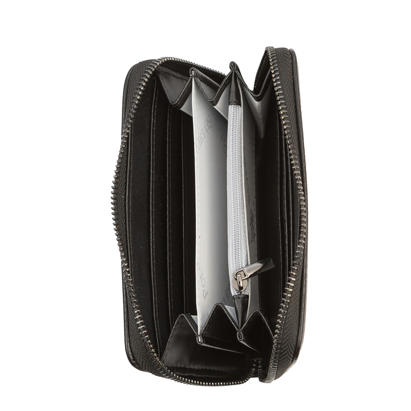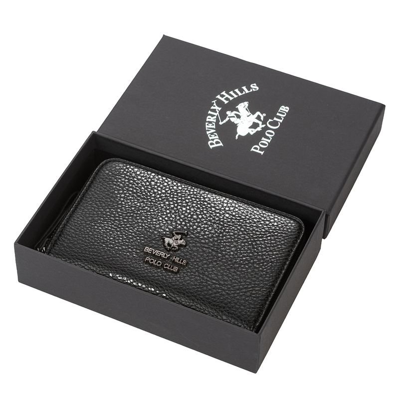 Това дамско портмоне от еко кожа е компактно, но предлага отлична организация на съдържанието. Правоъгълната форма и удобният обиколен цип осигуряват сигурно затваряне и лесен достъп до всички отделения. Вътрешността е с няколко разширяващи се секции, в които могат да се подредят банкноти, карти, документи и бележки. Дискретното златисто лого Beverly Hills Polo Club в предната част придава завършен, елегантен акцент и превръща аксесоара в чудесен подарък.