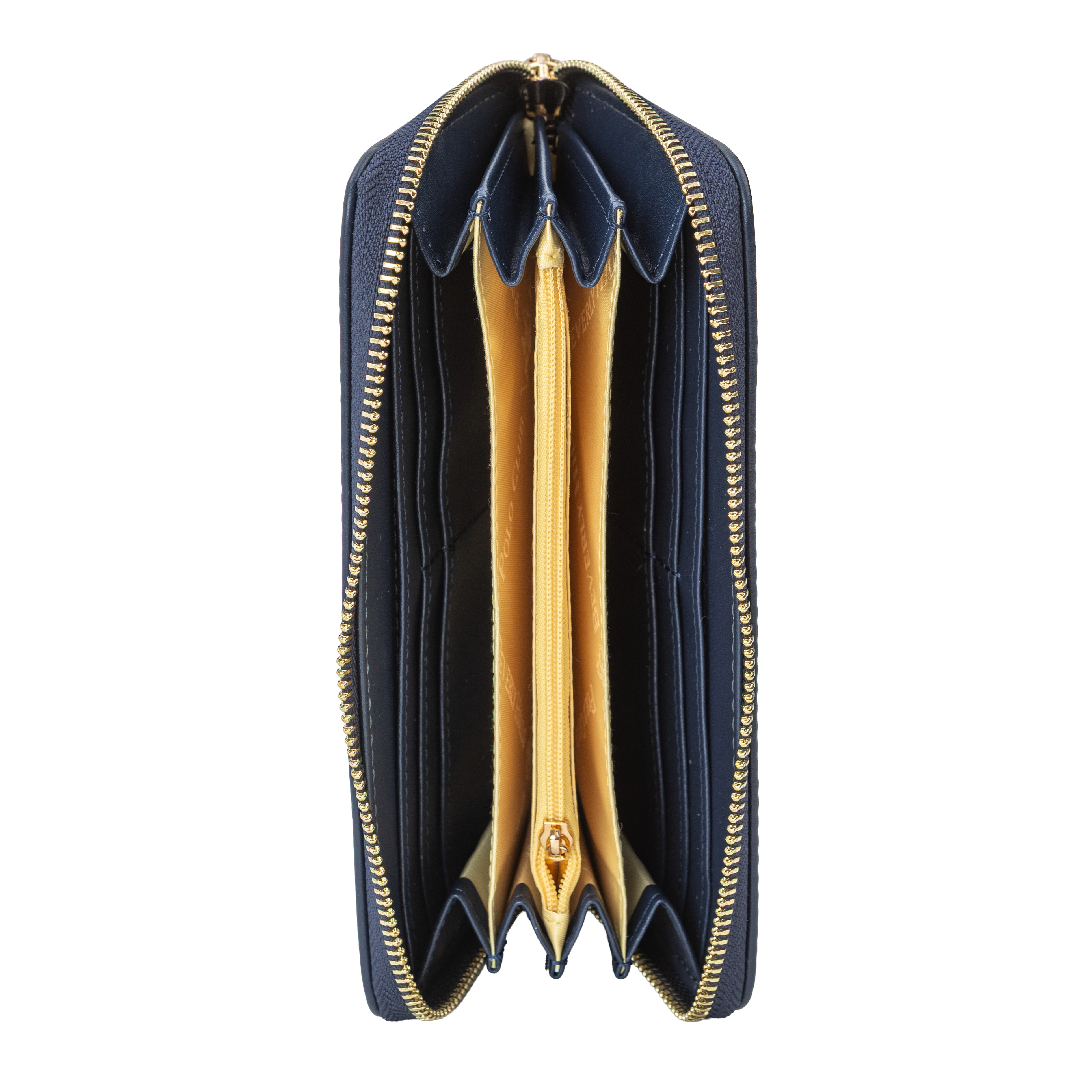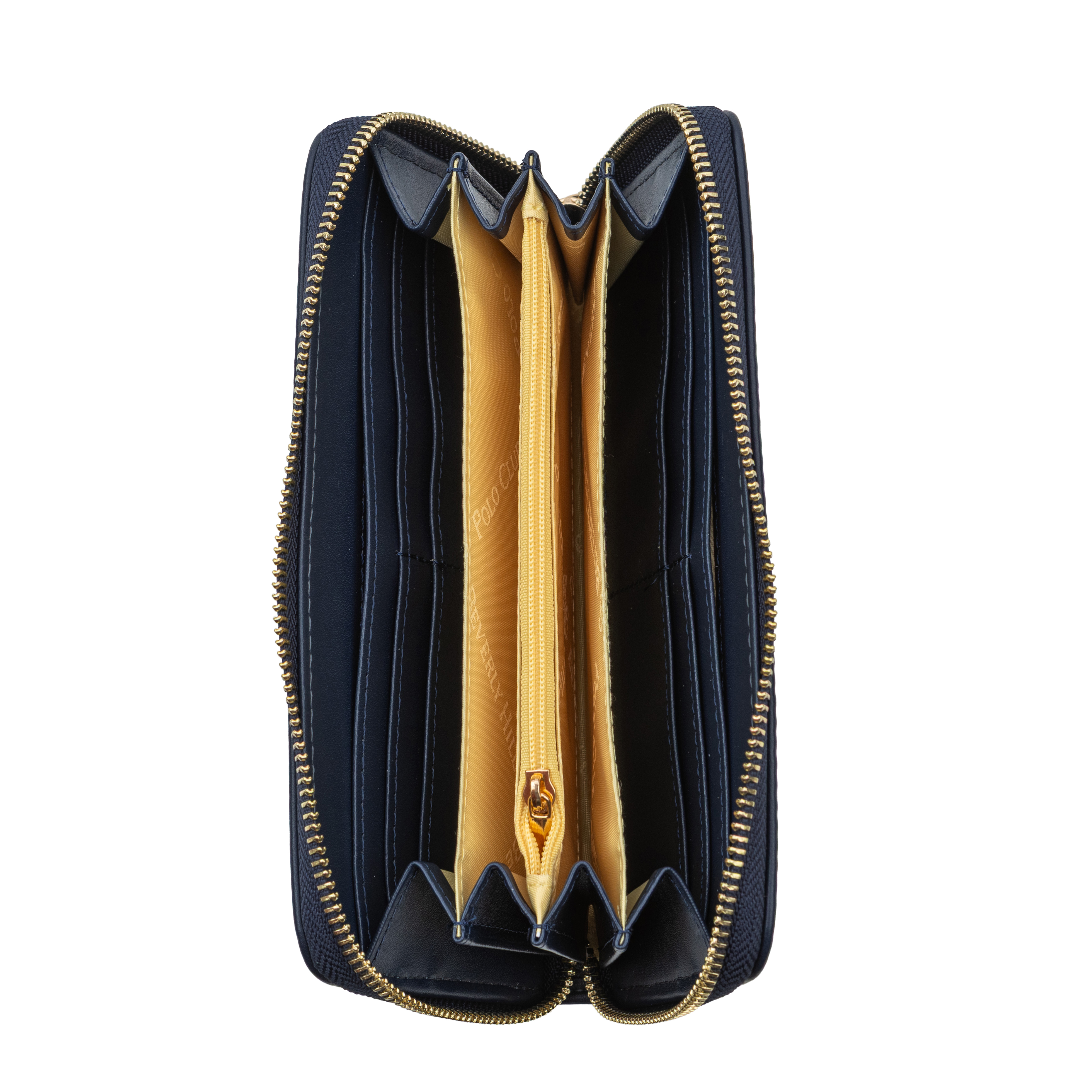Това дамско портмоне от еко кожа е компактно, но предлага отлична организация на съдържанието. Правоъгълната форма и удобният обиколен цип осигуряват сигурно затваряне и лесен достъп до всички отделения. Вътрешността е с няколко разширяващи се секции, в които могат да се подредят банкноти, карти, документи и бележки. Дискретното златисто лого Beverly Hills Polo Club в предната част придава завършен, елегантен акцент и превръща аксесоара в чудесен подарък.