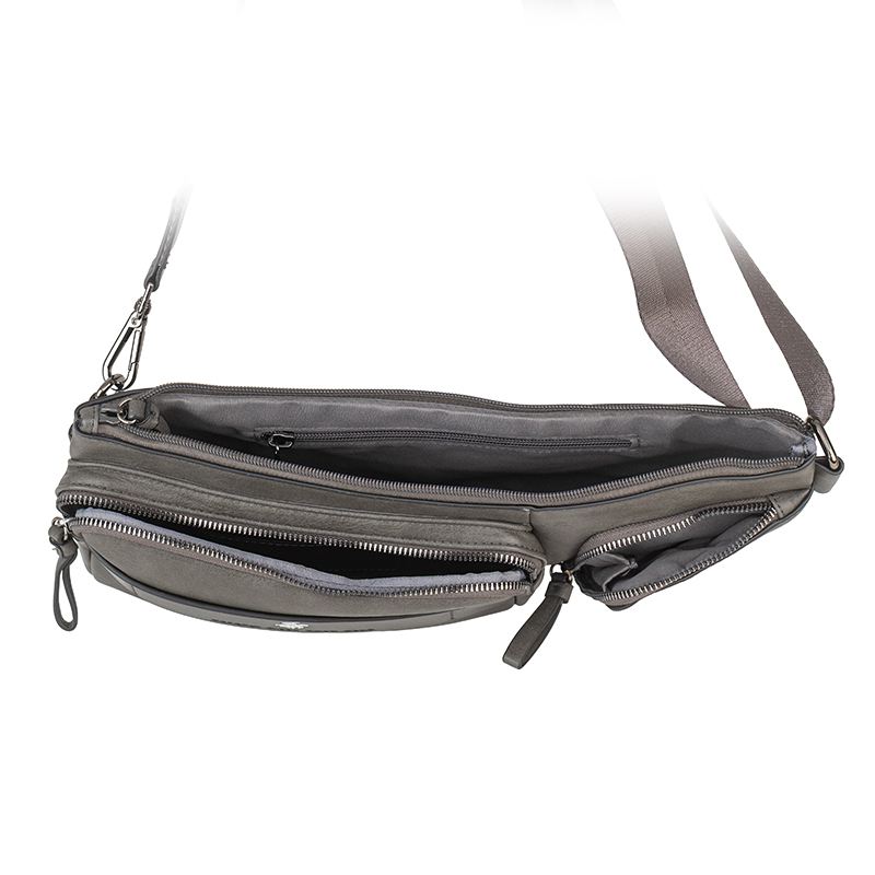 Тази мъжка чанта от еко кожа в цвят антрацит е подходяща за ежедневието, когато искате всичко необходимо да е под ръка. Удължената форма тип „crossbody“ и размерите 35 x 15 x 4 см позволяват удобно съхранение на телефон, портфейл, ключове, документи и дребни аксесоари. Основното отделение се затваря с цип и осигурява сигурност за ценните вещи. По лицевата част са разположени няколко външни джоба с цип, които дават бърз достъп до най-често използваните предмети – слушалки, карти, монетник или документи за пътуване. Регулируемата презрамка позволява чантата да се носи през рамо или диагонално според предпочитанията, като осигурява максимален комфорт при движение. Еко кожата в антрацитен нюанс се поддържа лесно и придава на модела модерно, урбанистично излъчване, а дискретното лого Beverly Hills Polo Club допълва стилния завършек.