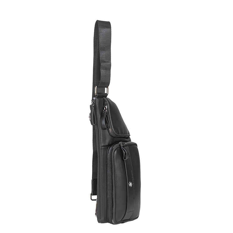 Тази мъжка чанта от еко кожа в черен цвят е подходяща за ежедневието, когато искате всичко необходимо да е под ръка. Удължената форма тип „crossbody“ и размерите 35 x 15 x 4 см позволяват удобно съхранение на телефон, портфейл, ключове, документи и дребни аксесоари. Основното отделение се затваря с цип и осигурява сигурност за ценните вещи. По лицевата част са разположени няколко външни джоба с цип, които дават бърз достъп до най-често използваните предмети – слушалки, карти, монетник или документи за пътуване. Регулируемата презрамка позволява чантата да се носи през рамо или диагонално според предпочитанията, като осигурява максимален комфорт при движение. Еко кожата в черен нюанс се поддържа лесно и придава на модела модерно, урбанистично излъчване, а дискретното лого Beverly Hills Polo Club допълва стилния завършек.
