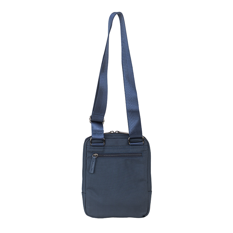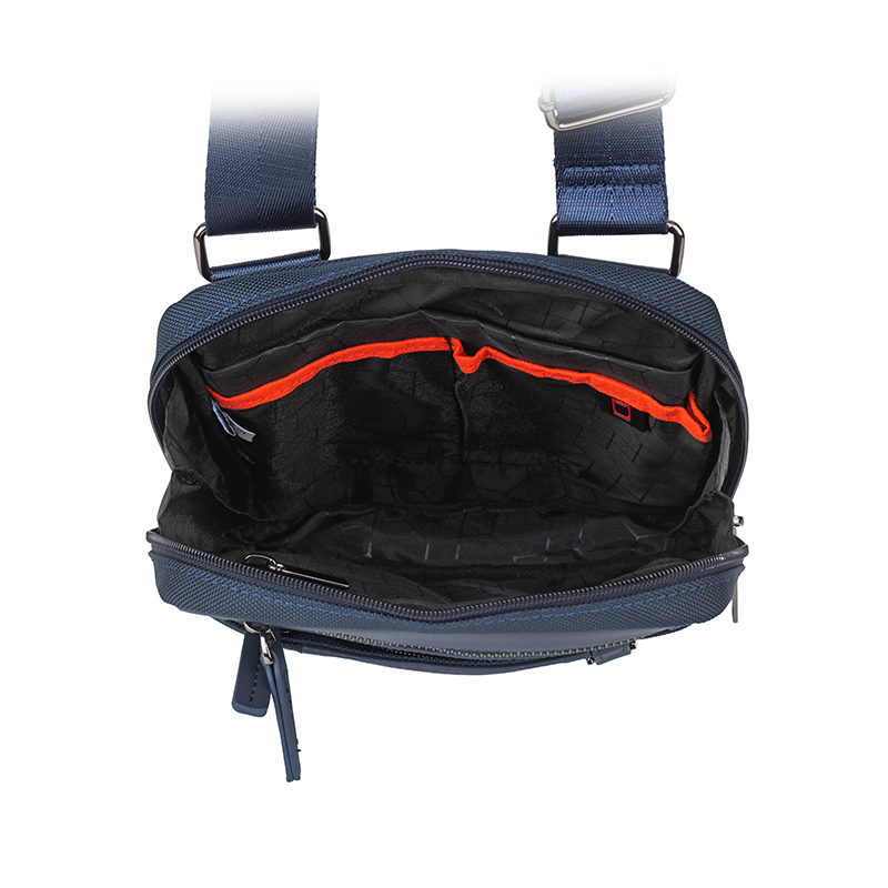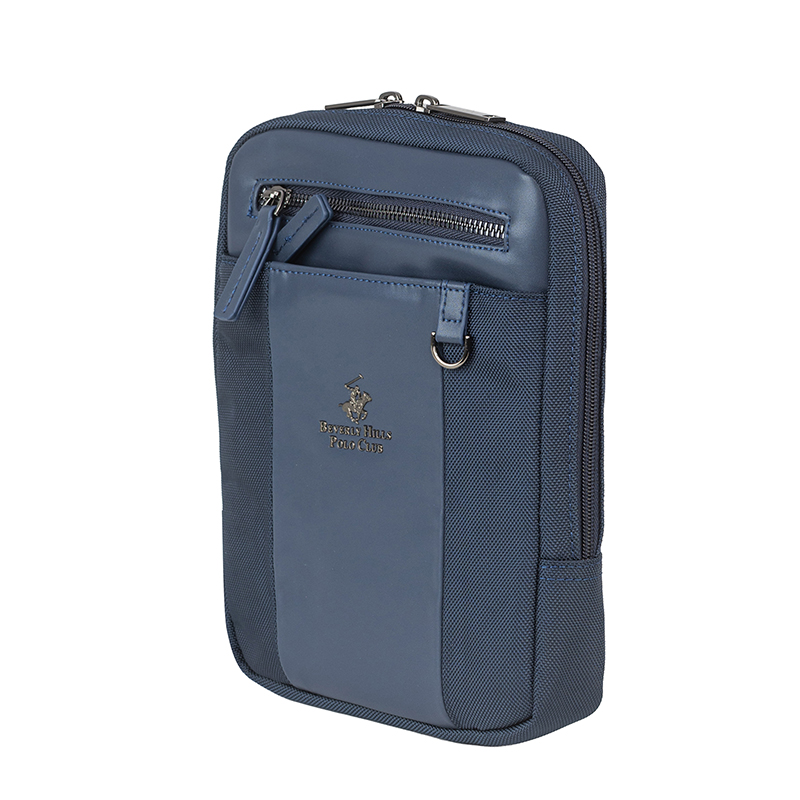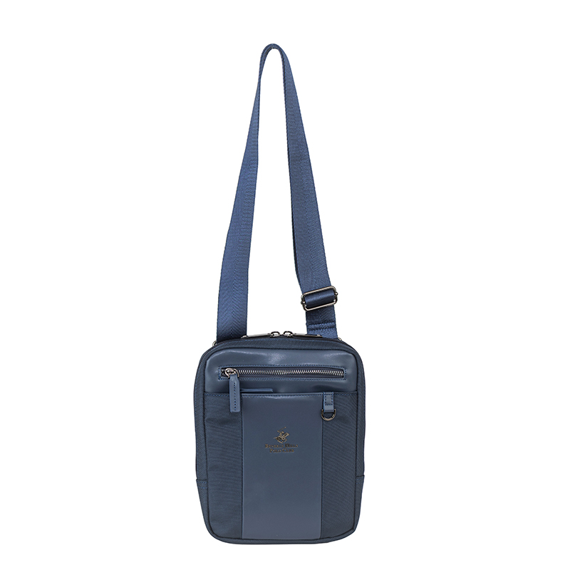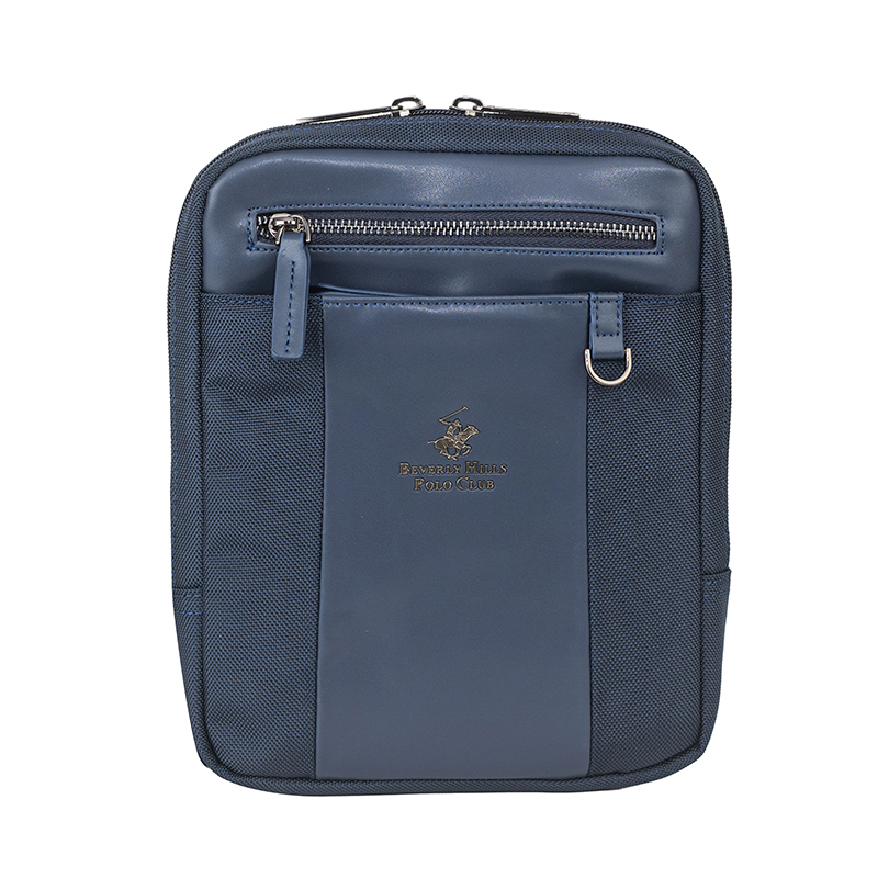 Тази мъжка чанта през рамо в син цвят е изработена от комбинация еко кожа и полиестер, която съчетава здравина, лекота и лесна поддръжка. Компактните размери 19 x 24 x 4 см са идеални за носене на таблет, телефон, портфейл, ключове и документи. Основното отделение се затваря с цип и предлага сигурно пространство за по-ценните вещи, като вътрешните джобове позволяват подредба на аксесоарите. На лицевата част са разположени допълнителни външни джобове с цип, които осигуряват бърз достъп до често използвани предмети – билети, карти, слушалки или зарядно. Регулируемата презрамка дава възможност да настроите дължината според стила си на носене, като гарантира комфорт през целия ден. Дискретното лого на Beverly Hills Polo Club и изчистеният дизайн придават спортно-елегантно излъчване, което лесно се комбинира с ежедневни и по-официални облекла.