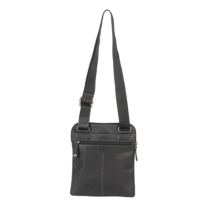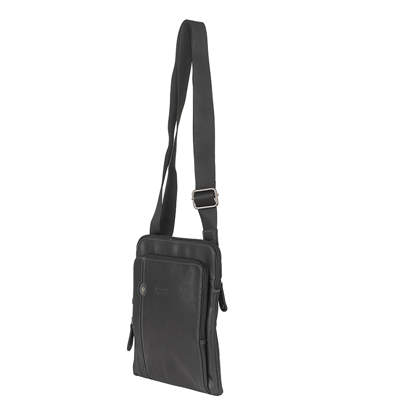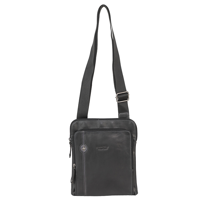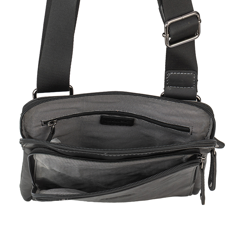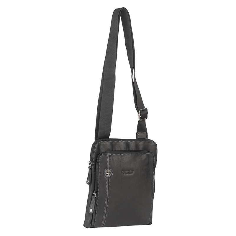 Тази мъжка чанта от естествена кожа в черен цвят е модел, който съчетава стил и функционалност. Размерите 23 x 27 x 4 см я правят идеална за носене през рамо – достатъчно компактна, но и с място за всички необходими вещи: портфейл, телефон, документи, ключове и дори малък таблет. Основното отделение се затваря с цип и предлага сигурно пространство за по-ценните принадлежности, а вътрешните джобове спомагат за подредена организация. Отпред е разположен допълнителен джоб с цип, който осигуряват бърз достъп до най-често използваните вещи, без да се налага да отваряте основното отделение. Широката регулируема текстилна презрамка с брандиран надпис Beverly Hills Polo Club гарантира комфорт при носене и лесно се наглася спрямо предпочитанията. Устойчивата естествена кожа придава изискан вид и осигурява дълъг живот на чантата, а дискретното лого на предната част завършва елегантния силует.