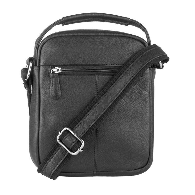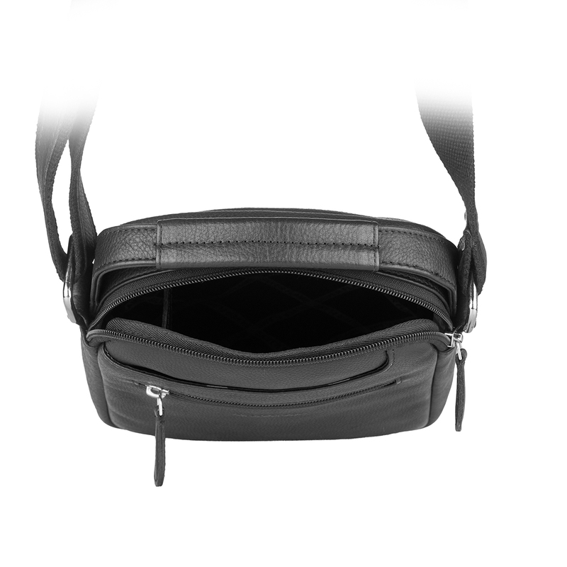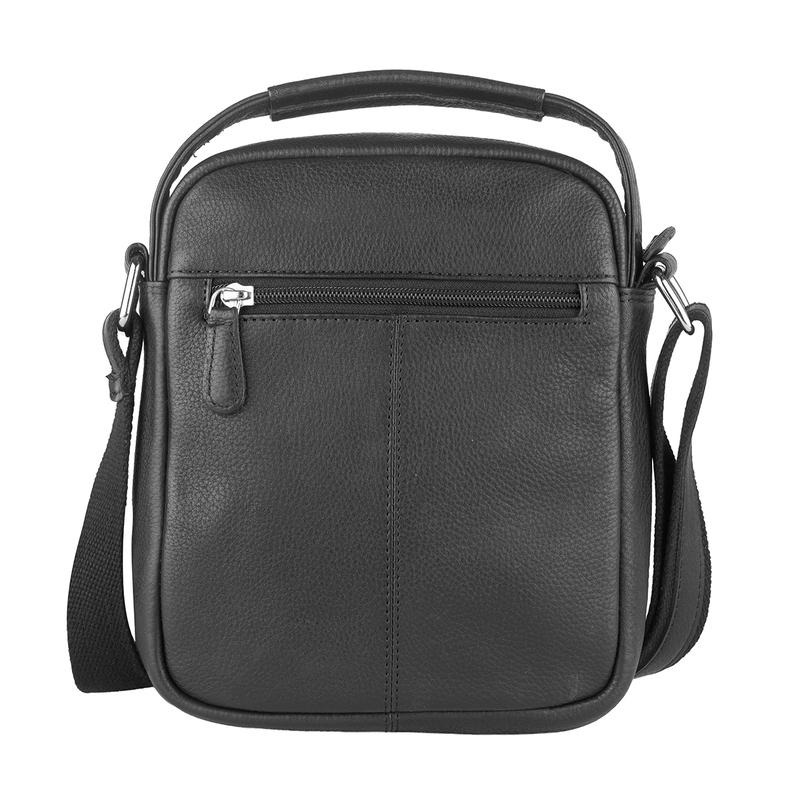 Тази мъжка кожена чанта в черен цвят е идеалният спътник за работа, пътуване или свободното време. Изработена е от мека, но устойчива естествена кожа, която запазва добрия си вид дълго време. Основното отделение се затваря с цип и предлага достатъчно пространство за портфейл, телефон, ключове и документи. Отпред има външен джоб с цип за бърз достъп до най-използваните принадлежности. Регулируемата презрамка позволява удобно носене през рамо или диагонално според предпочитанията.