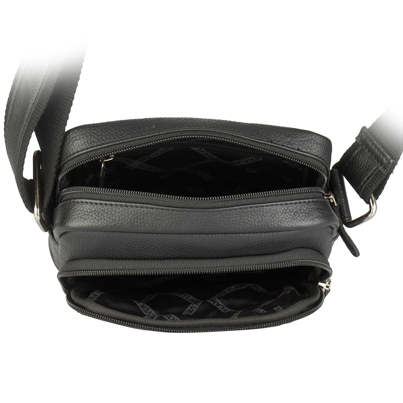 Тази мъжка чанта от естествена кожа в черен цвят е компактно и стилно решение за всеки ден. Предният джоб с цип осигурява лесен достъп до телефон, ключове или документи, а основното отделение побира портфейл и други необходими принадлежности. Вътрешните и външни джобове с цип помагат да организирате вещите си прегледно и сигурно. Регулируемата дълга презрамка позволява комфортно носене през рамо или диагонално, така че чантата да се адаптира към вашия стил и предпочитания.