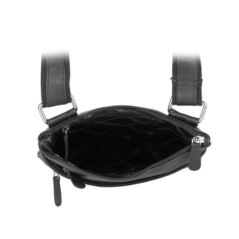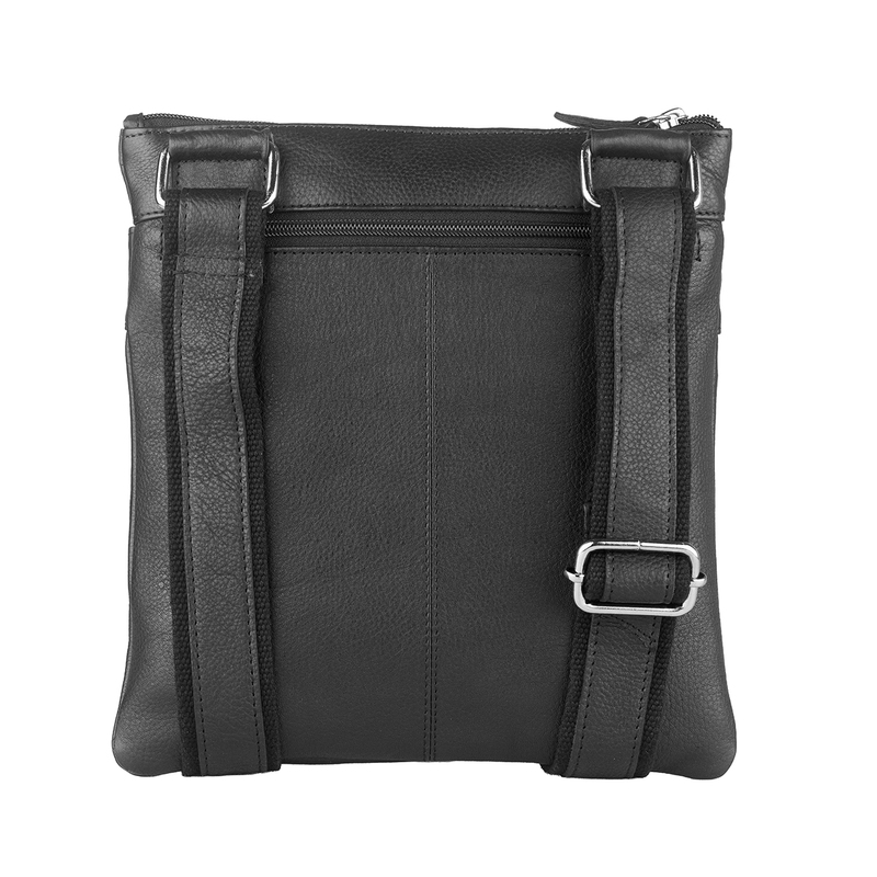 Тази мъжка кожена чанта е изработена от мека естествена кожа в класически черен цвят, който лесно се комбинира с всякакво облекло – от спортно до по-елегантно. Вертикалната форма е компактна, но достатъчно практична за ежедневието. На предната част има удобен външен джоб с цип за бърз достъп до телефон, ключове или документи. Регулируемата дълга презрамка позволява да носите чантата през рамо или диагонално, а горната къса дръжка е идеална, когато искате да я държите в ръка. Здравите ципове и подсилените шевове осигуряват дълъг живот и надеждност при интензивна ежедневна употреба.