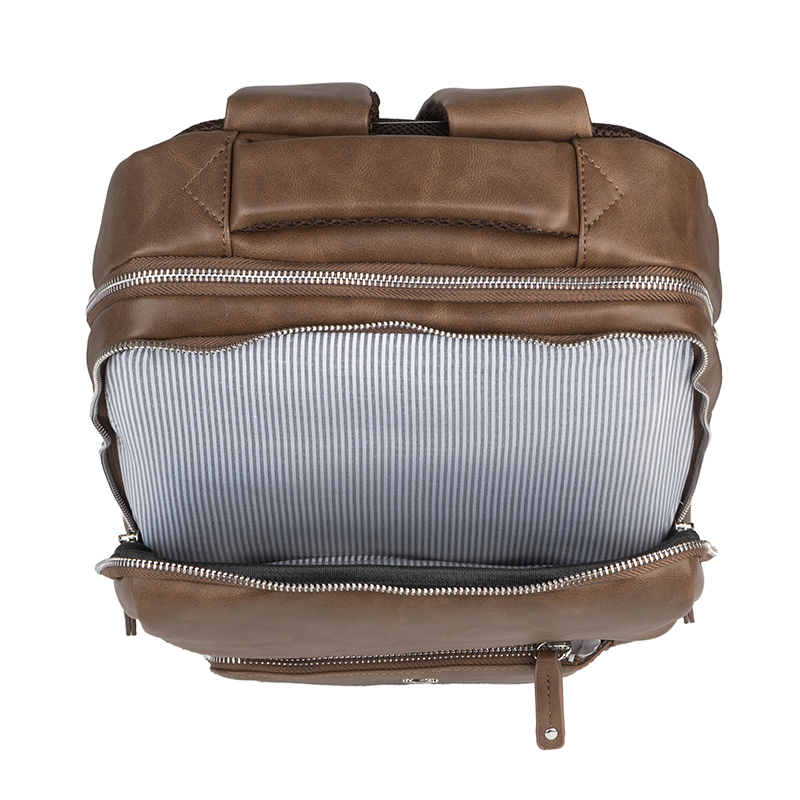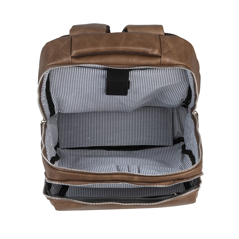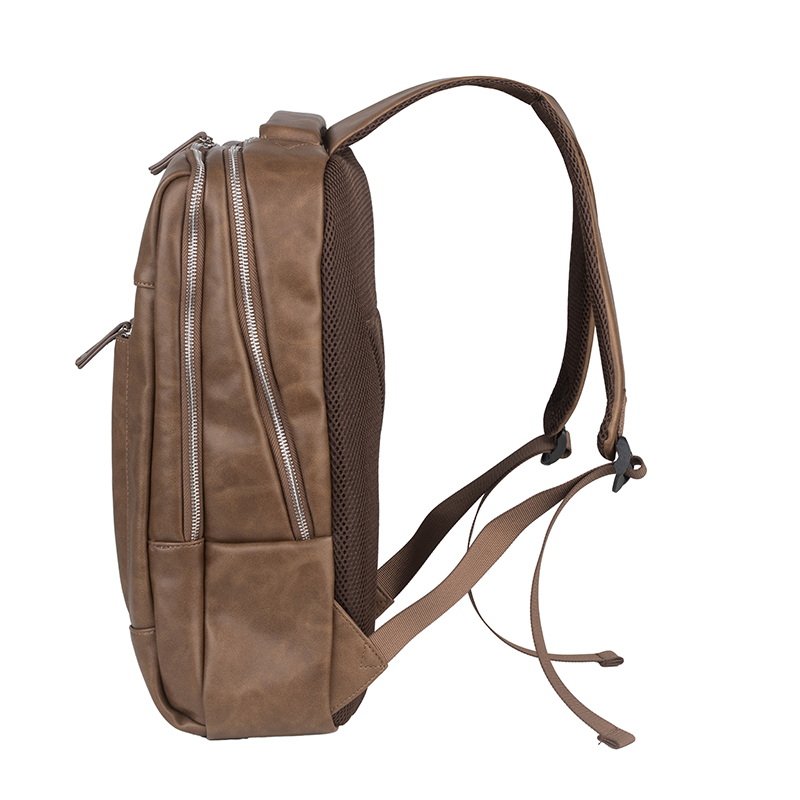 Тази мъжка раница от еко кожа в класически тъмнокафяв цвят е идеалният избор за ежедневието. Размерите 29 x 41 x 14 см осигуряват достатъчно място за лаптоп или таблет, документи и всички необходими вещи. Основното отделение се затваря с цип и разполага с отделен джоб за устройство, който го предпазва от удари и надрасквания. В предната част е разположен удобен външен джоб с цип за бърз достъп до телефон, портфейл или ключове. Еко кожата се поддържа лесно, запазва стилния си вид във времето и придава на раницата изискана, но ненатрапчива визия, подходяща за офис, университет или пътуване.