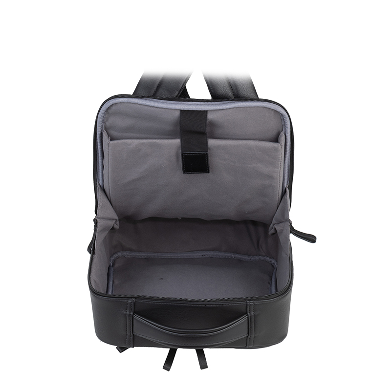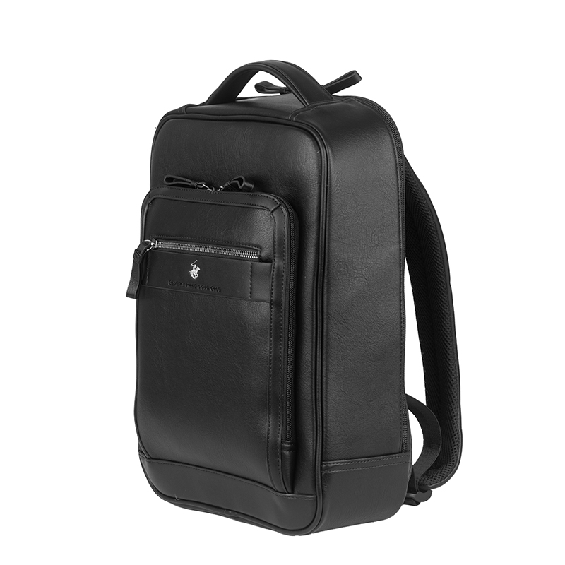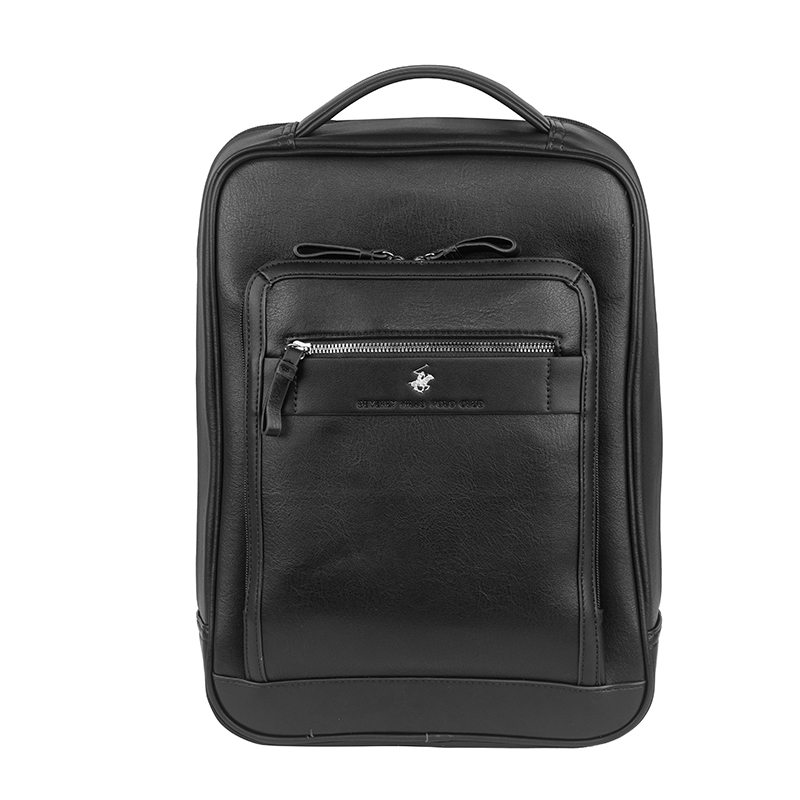 Тази мъжка раница в черен цвят е изработена от устойчива еко кожа и предлага балансирана комбинация от стил и практичност. Размерите 28 x 39 x 11 см осигуряват достатъчно място за лаптоп или таблет, документи, зарядни и всички необходими вещи за деня. Основното отделение се затваря с цип и включва вътрешен джоб, който помага за организацията на съдържанието. На лицевата част са разположени един голям и един по-малък външен джоб с цип – идеални за телефон, портфейл, ключове и аксесоари. Изчистеният дизайн, комбиниран с дискретното лого Beverly Hills Polo Club, придава на модела модерно и представително излъчване, което се вписва отлично както в офис среда, така и в по-неформални ситуации.