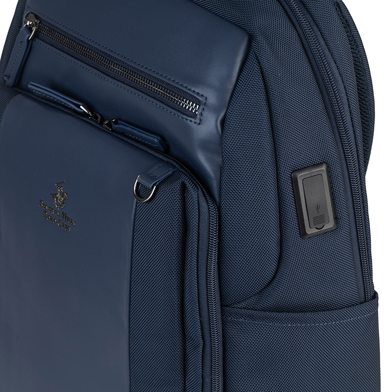 Тази мъжка раница в синьо е изработена от комбинация еко кожа и полиестер, която осигурява здравина, лекота и лесна поддръжка. С размери 30 x 42 x 14,5 см моделът разполага с голямо пространство за лаптоп или таблет, документи, учебници и аксесоари. На лицевата част е разположен голям външен джоб с цип, идеален за портфейл, телефон или ключове. Широките регулируеми презрамки са подплатени, за да гарантират максимален комфорт, а омекотеният гръб подобрява удобството при носене. Изчистеният дизайн, комбиниран с дискретното лого Beverly Hills Polo Club, придава на раницата спортно-елегантно излъчване, което се вписва отлично във всяка мъжка визия.