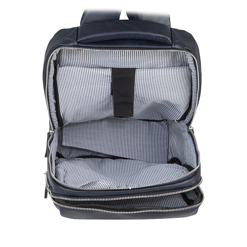 Тази мъжка раница от еко кожа в син цвят е идеалният избор за ежедневието. Размерите 29 x 41 x 14 см осигуряват достатъчно място за лаптоп или таблет, документи и всички необходими вещи. Основното отделение се затваря с цип и разполага с отделен джоб за устройство, който го предпазва от удари и надрасквания. В предната част е разположен удобен външен джоб с цип за бърз достъп до телефон, портфейл или ключове. Еко кожата се поддържа лесно, запазва стилния си вид във времето и придава на раницата изискана, но ненатрапчива визия, подходяща за офис, университет или пътуване.