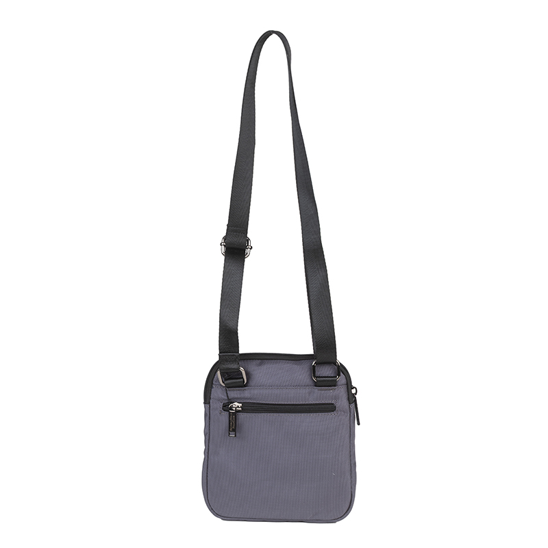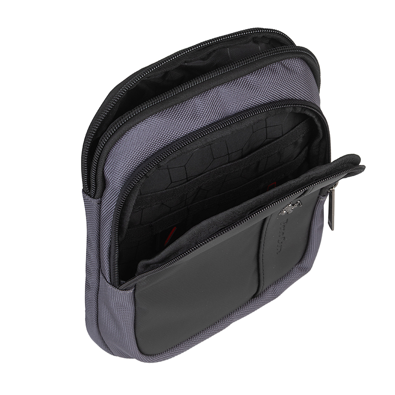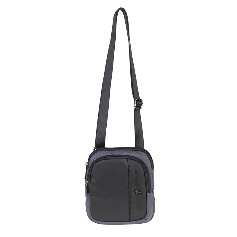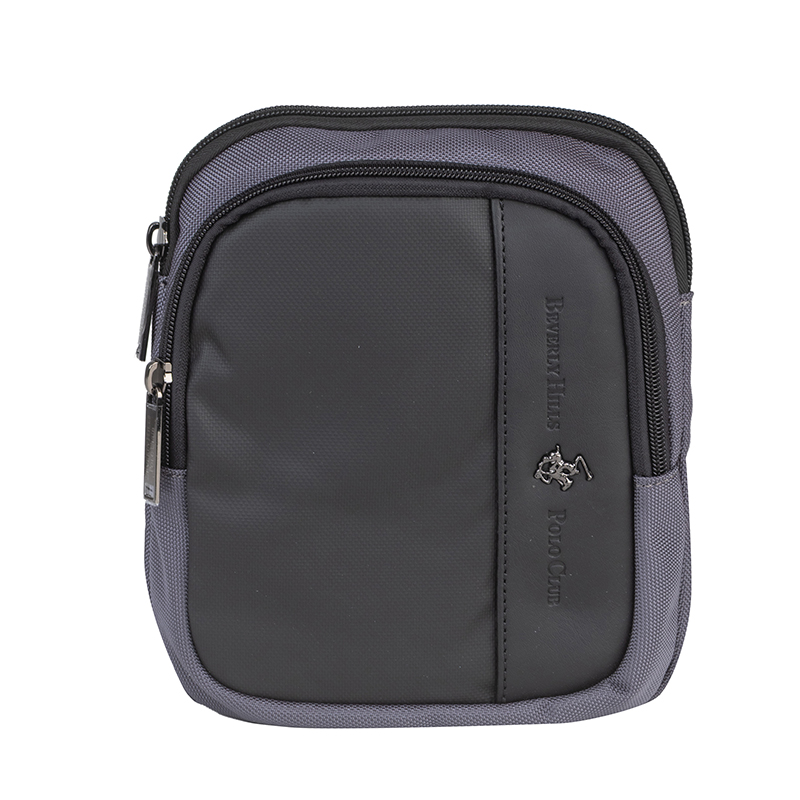 Тази елегантна мъжка чанта през рамо е изработена от устойчив текстил в сиво и черно. Моделът има два основни отделения с цип и още един джоб с цип на гърба, за ценни вещи. Подплатата е мека и издръжлива, а металните ципове работят гладко. Регулируемата презрамка осигурява комфортно носене през целия ден – идеална за градски разходки, работа и като удобна чанта за пътуване.