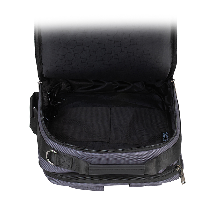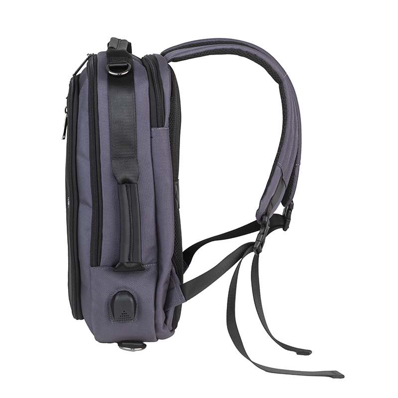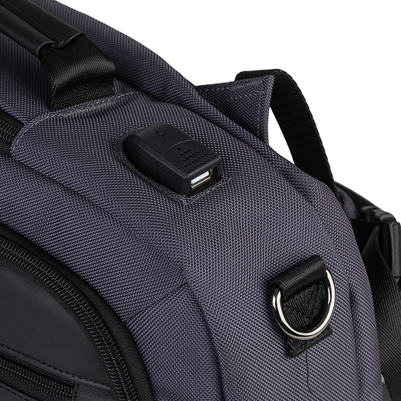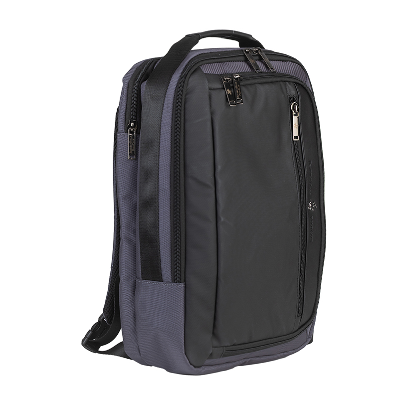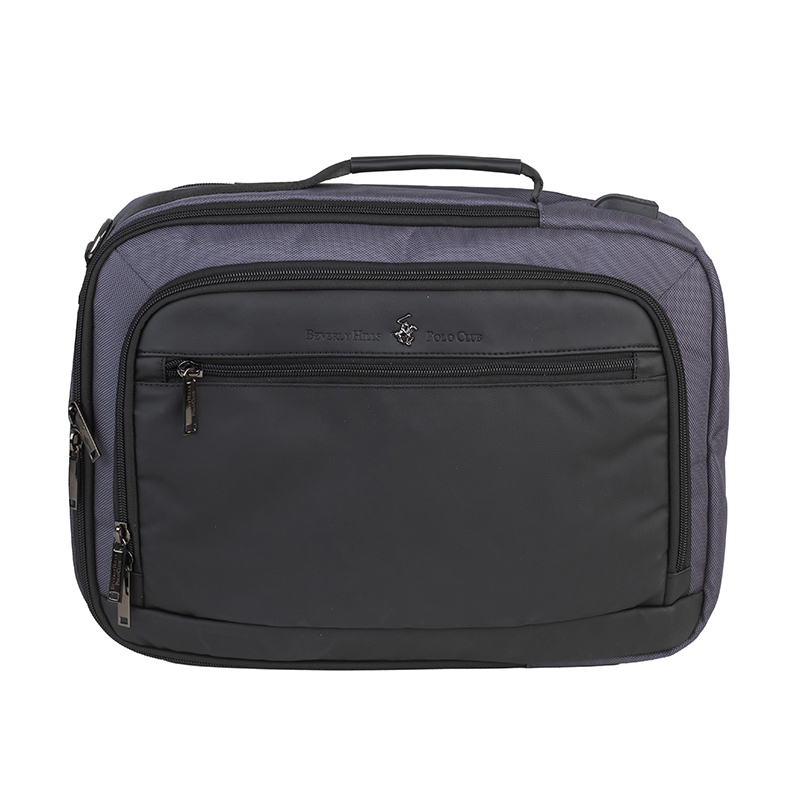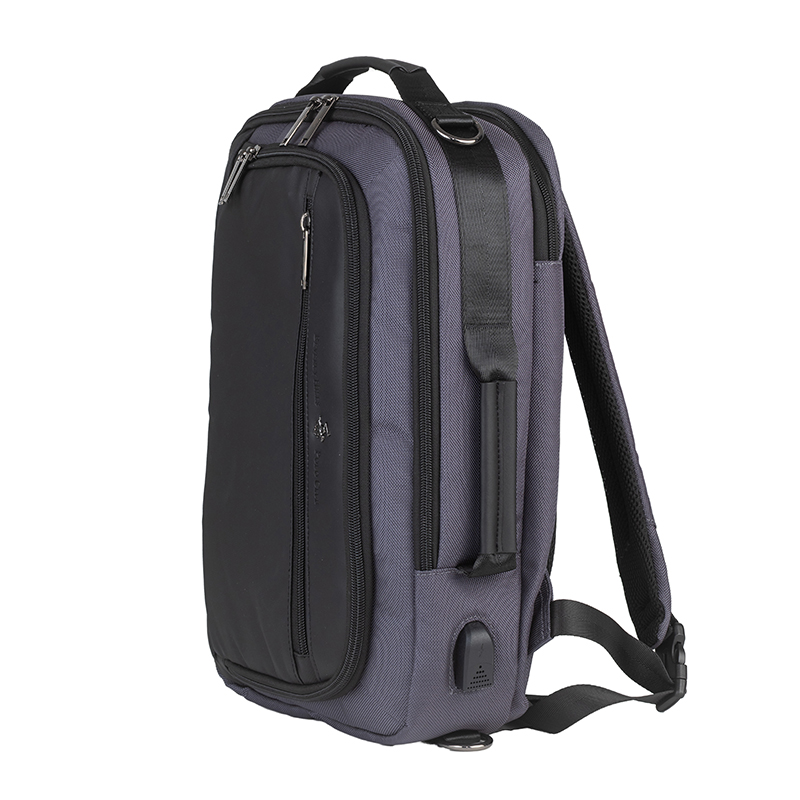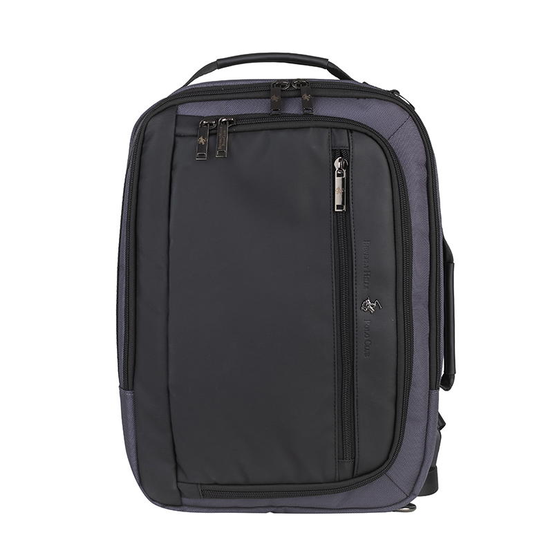 Тази елегантна мъжка раница в сиво и черно е компактна и издръжлива – идеална за градска среда и пътуване. Две основни отделения с широки ципове осигуряват отлична организация, а предният панел с органайзер държи телефон, химикалки и дребни аксесоари под ръка. Дишащият гръб и регулируемите презрамки дават комфорт при целодневно носене, докато горната и страничната дръжка улесняват бързото пренасяне като чанта. Вграден външен USB порт позволява удобно зареждане на устройства (с вътрешна свързаност към power bank). Метални ципове и дискретно лого завършват чистата, модерна визия на тази качествена мъжка раница – надежден избор за офис, университет или удобна раница за пътуване.