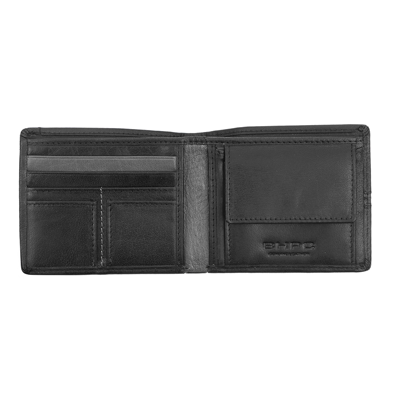 Избери този мъжки портфейл в черно от естествена кожа и допълни визията си с практичен и стилен аксесоар.