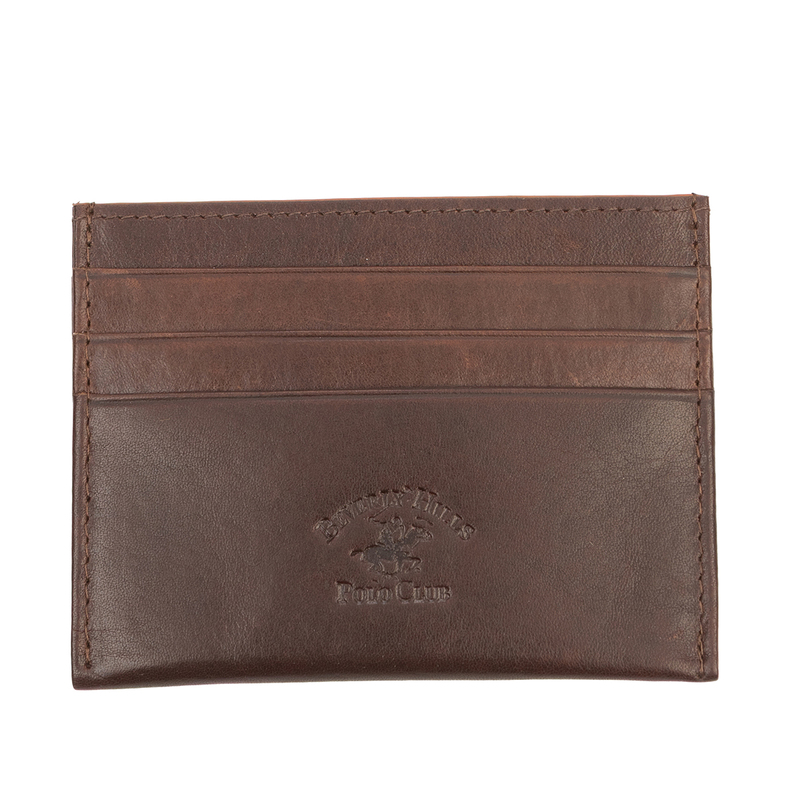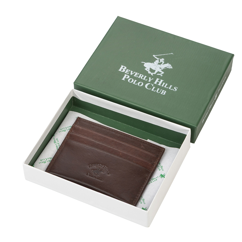 Този мъжки картодържател от естествена кожа в класически тъмнокафяв цвят е идеален за почитателите на минималистичните и стилни аксесоари. Компактните размери 10,2 x 7,9 x 0,2 см позволяват лесно носене в джоб, малка чантичка или портфейл. Двете страни разполагат с по няколко отделения за карти, които осигуряват отлична подреденост и бърз достъп. Меката, но устойчива естествена кожа гарантира дълготрайна употреба и комфортно усещане при всяко докосване, а дискретното лого на Beverly Hills Polo Club придава завършен, луксозен характер.