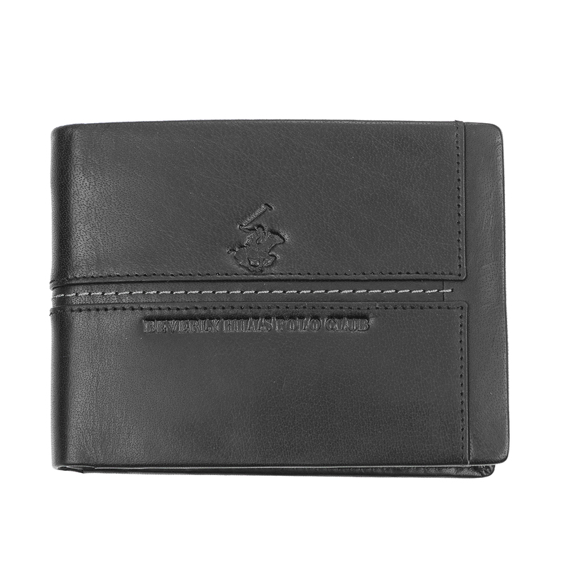Изберете този стилен мъжки портфейл в черно от естествена кожа като практичен и изискан аксесоар или перфектен подарък за специален мъж
