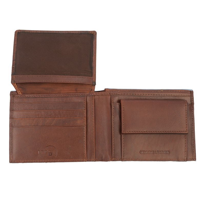 От дясната страна е разположен удобен монетник с капаче, който съхранява сигурно дребните пари и дребни вещи. Просторното отделение за банкноти побира различни валути, а вътрешните джобчета могат да се използват за визитки или допълнителни документи. Меката, но устойчива естествена кожа осигурява дълготрайност и усещане за високо качество при всяко докосване.