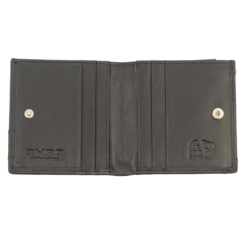 Този мъжки портфейл от естествена кожа в класическо черно е компактен вертикален модел, създаден за мъже, които предпочитат функционални и дискретни аксесоари. Размерите 9,3 x 9,3 x 1 см позволяват лесно прибиране в джоб на панталон или яке, без да създава излишен обем. От вътрешната страна са разположени практични отделения за банкови и лични карти, осигуряващи отлична подреденост и бърз достъп до най-важните документи. Монетникът с капаче и копче пази дребните пари сигурно, а отделението за банкноти е достатъчно широко, за да побере сгънати банкноти. Гладката повърхност на естествената кожа е устойчива на ежедневно носене, а релефното лого на Beverly Hills Polo Club придава завършен луксозен акцент.