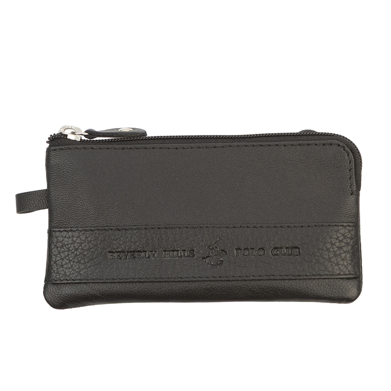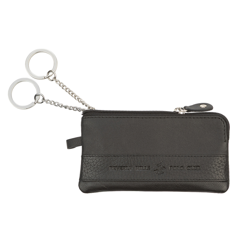 Този мъжки портфейл от естествена кожа в черен цвят е практичен калъф тип ключодържател, идеален за хора, които обичат всичко да е събрано на едно място. Компактните размери 12,7 x 7,1 x 0,5 позволяват лесно носене в джоб или малка чанта, без да заема излишно пространство. Основното отделение с цип осигурява сигурно място за монети, сгънати банкноти или ключове, а предното джобче е подходящо за карти.