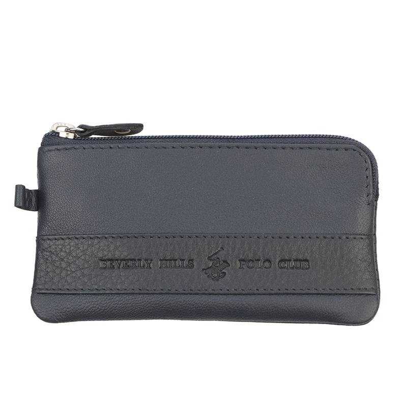 Този мъжки портфейл от естествена кожа в син цвят е практичен калъф тип ключодържател, идеален за хора, които обичат всичко да е събрано на едно място. Компактните размери 12,7 x 7,1 x 0,5 позволяват лесно носене в джоб или малка чанта, без да заема излишно пространство. Основното отделение с цип осигурява сигурно място за монети, сгънати банкноти или ключове, а предното джобче е подходящо за карти.