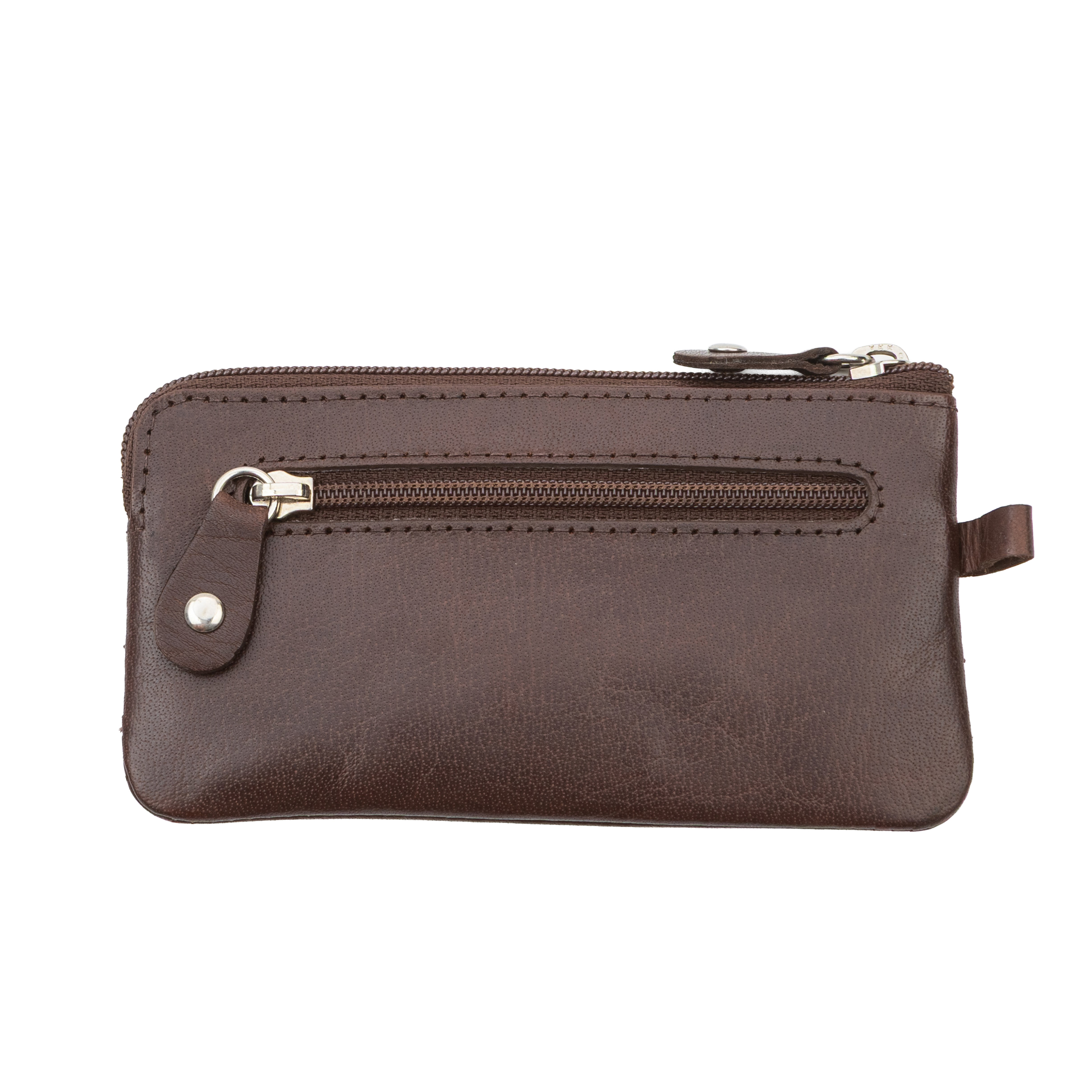 Този мъжки портфейл–калъф от естествена кожа в кафяв цвят е практичен модел, съчетаващ ключодържател и портфейл в едно. Основното отделение с цип предлага безопасно място за монети, сгънати банкноти или ключове. Двете метални халки - ключодържатели, свързани със здрава верижка, осигуряват удобно закачане на ключове. Естествената кожа издръжлива, а фините декоративни шевове и дискретното лого на Beverly Hills Polo Club придават стилен характер на аксесоара.