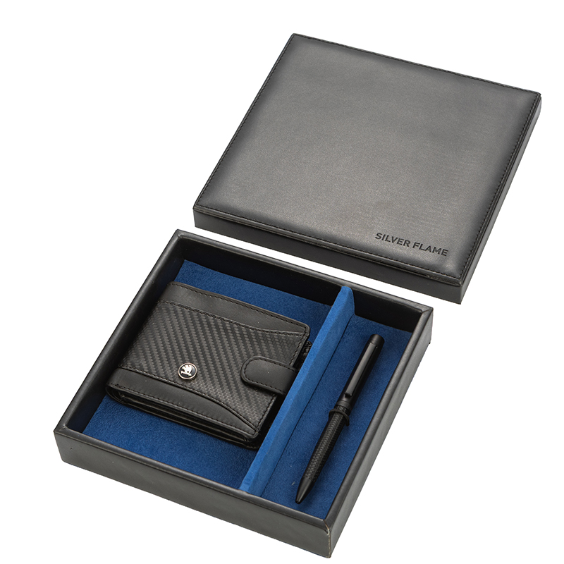 Добавете изисканост към ежедневието си или зарадвайте специален човек с този стилен мъжки комплект Volkswagen. Комплектът включва изискан портфейл с карбонов завършек и стилна химикалка, и двата с логото на Volkswagen. Продуктът е представен в луксозна подаръчна кутия, което го прави изключителен избор за мъжки подарък с вкус и характер.