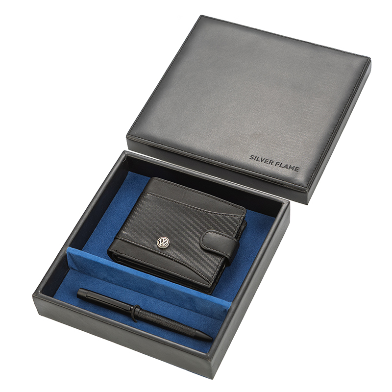 Добавете изисканост към ежедневието си или зарадвайте специален човек с този стилен мъжки комплект Volkswagen. Комплектът включва изискан портфейл с карбонов завършек и стилна химикалка, и двата с логото на Volkswagen. Продуктът е представен в луксозна подаръчна кутия, което го прави изключителен избор за мъжки подарък с вкус и характер.