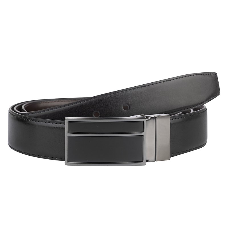 Коланът е изработен от гладка черна естествена кожа с чисти кантове и фини шевове. Правоъгълната плочкова катарама комбинира черен инлей и полирани метални елементи за модерна, елегантна визия. Универсалният дизайн го прави отличен избор както за официален панталон, така и за всекидневни дънки.